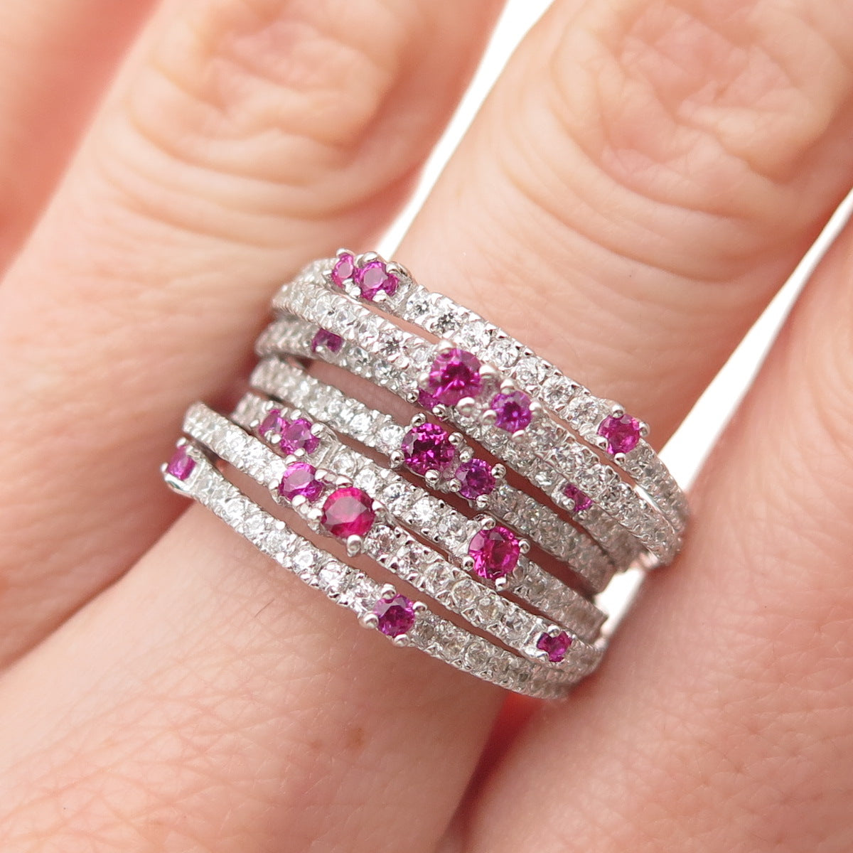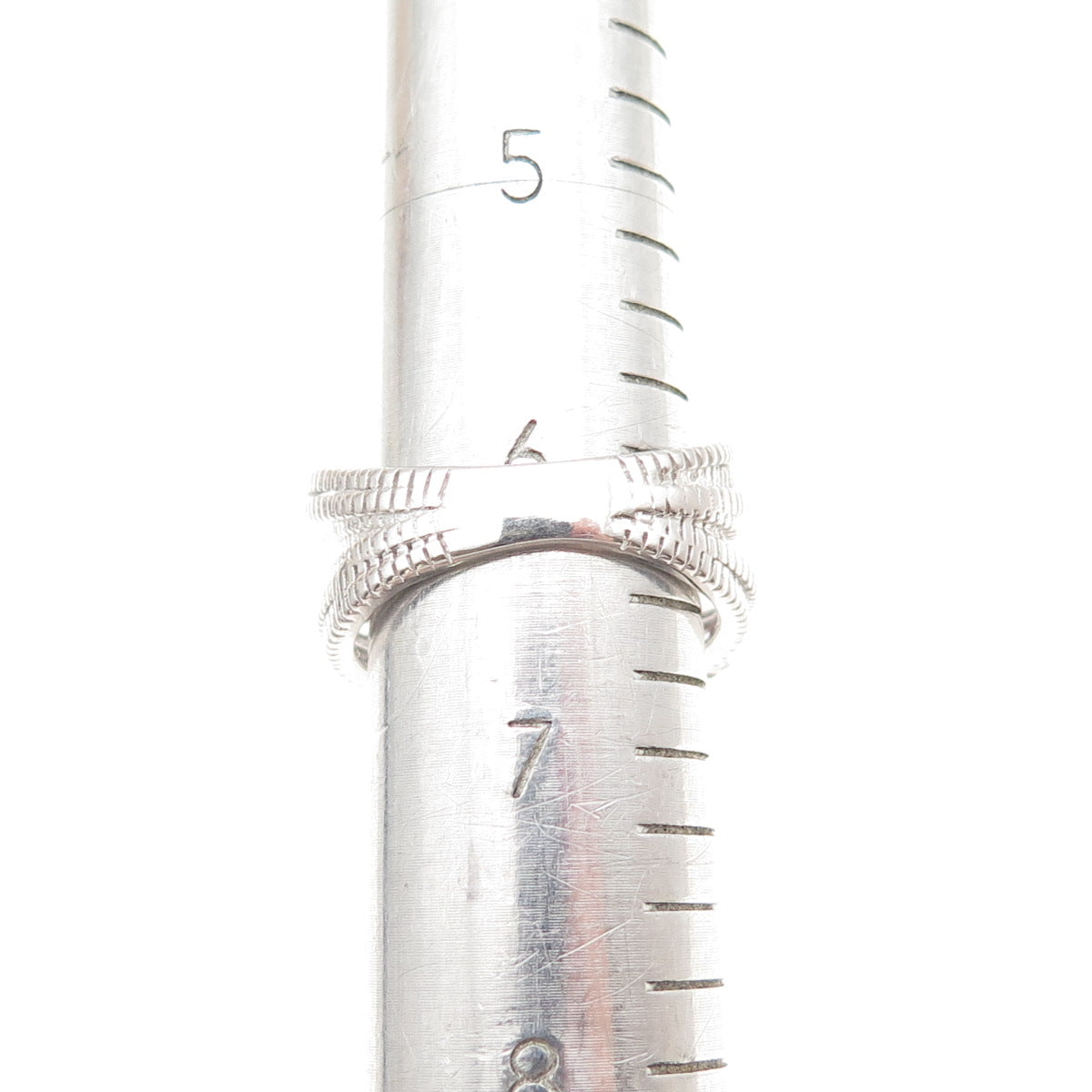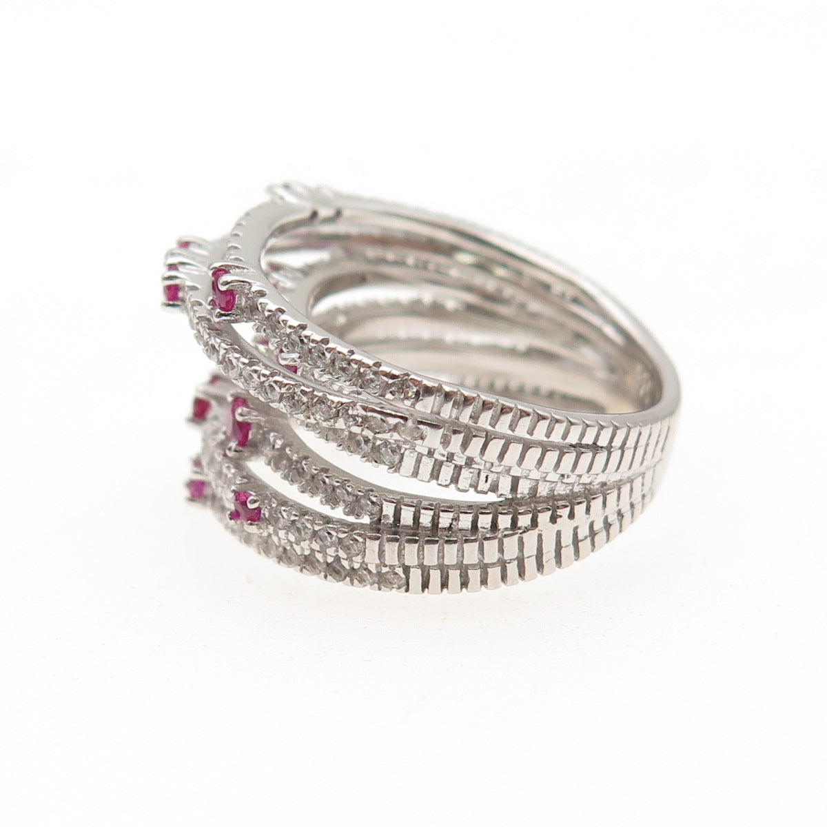 925 Sterling Silver Lab-Created Sapphire & C Z Crisscross Ring Size 6.25