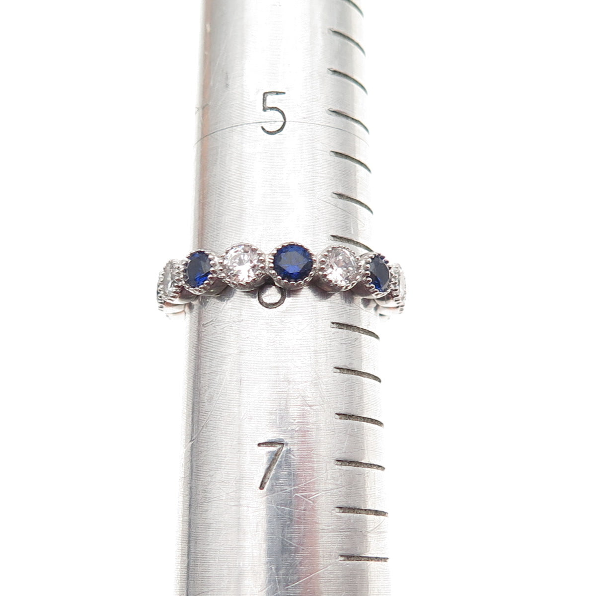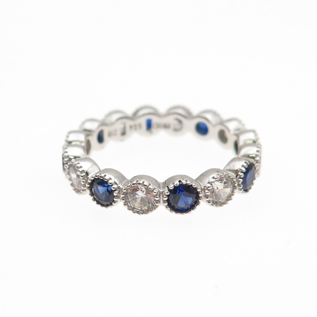 925 Sterling Silver Lab-Created Sapphire & C Z Eternity Band Ring Size 6