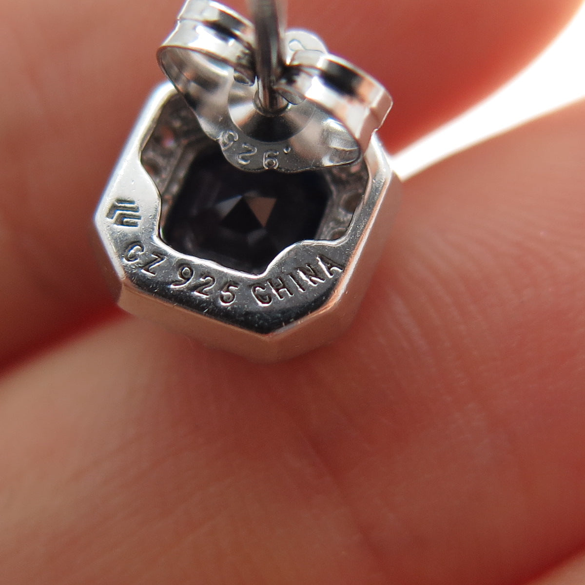 925 Sterling Silver Lab-Created Sapphire & C Z Stud Earrings