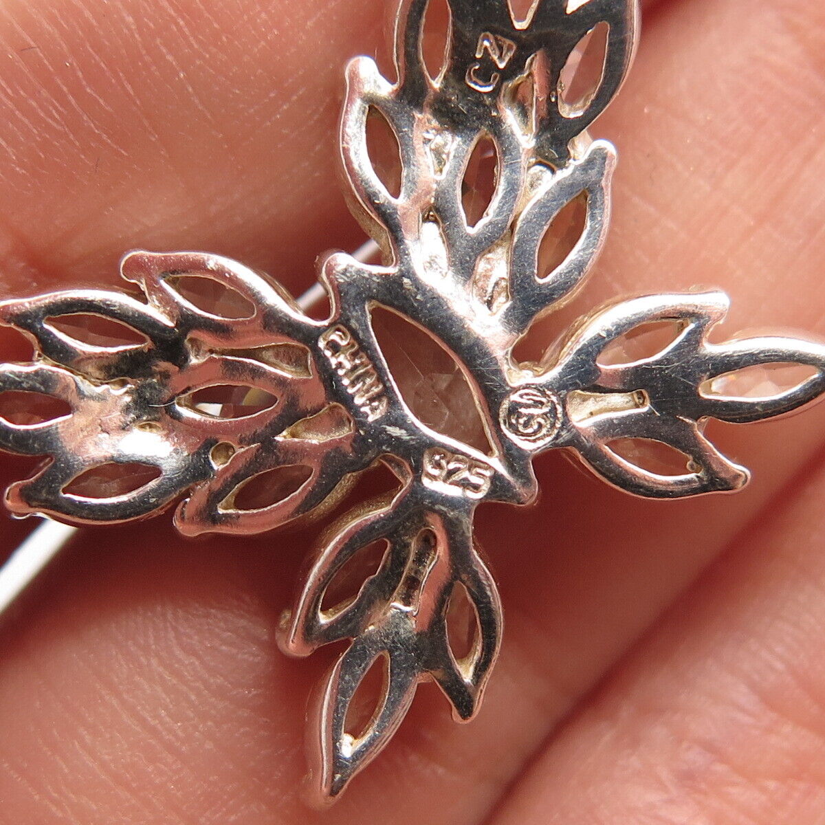 925 Sterling Silver Marquise-Cut C Z Rolo Chain Necklace 17"