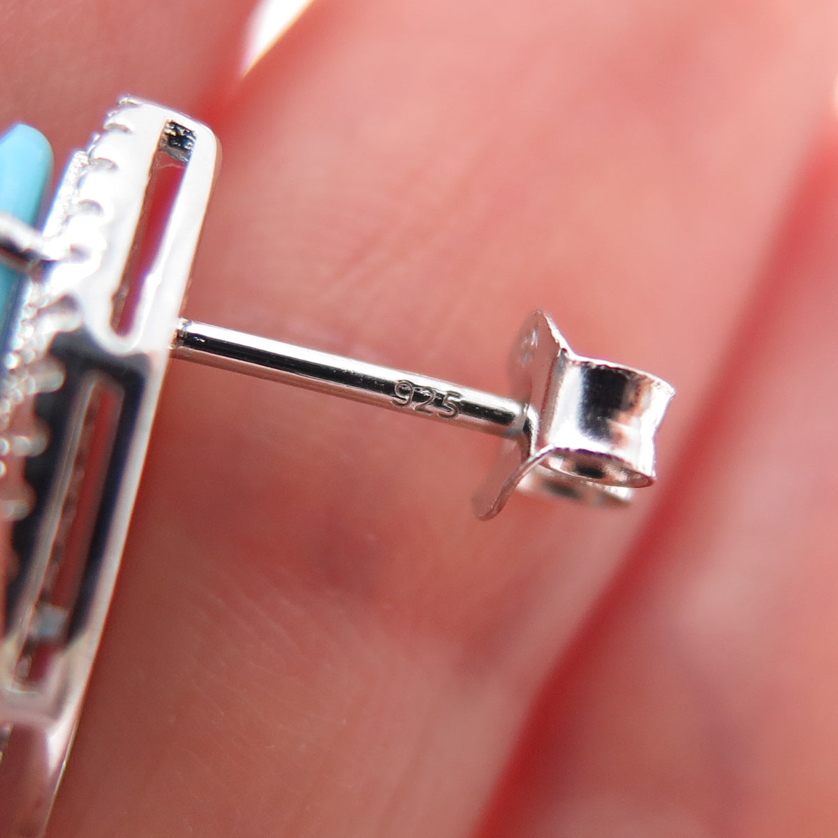 925 Sterling Silver Marquise-Cut Faux Turquoise & Round-Cut C Z Earrings