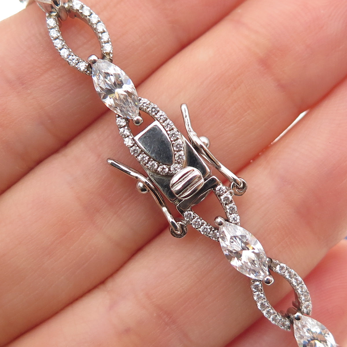 925 Sterling Silver Marquise & Round-Cut C Z Bracelet 6.75"