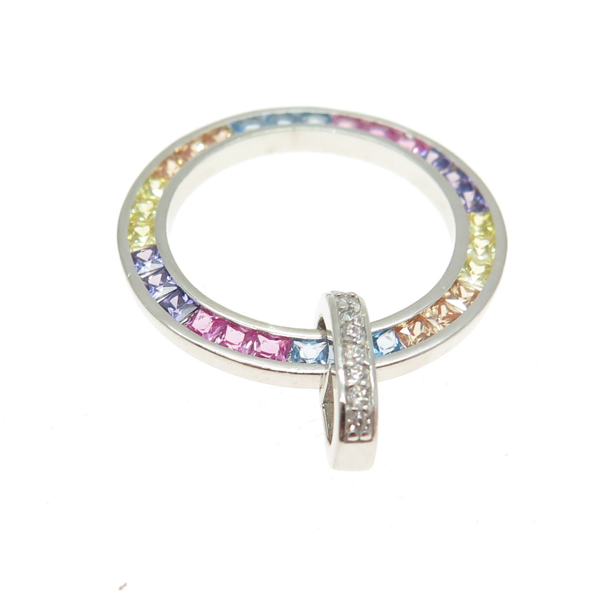 925 Sterling Silver Multi-Color C Z Rainbow Circle of Life Pendant