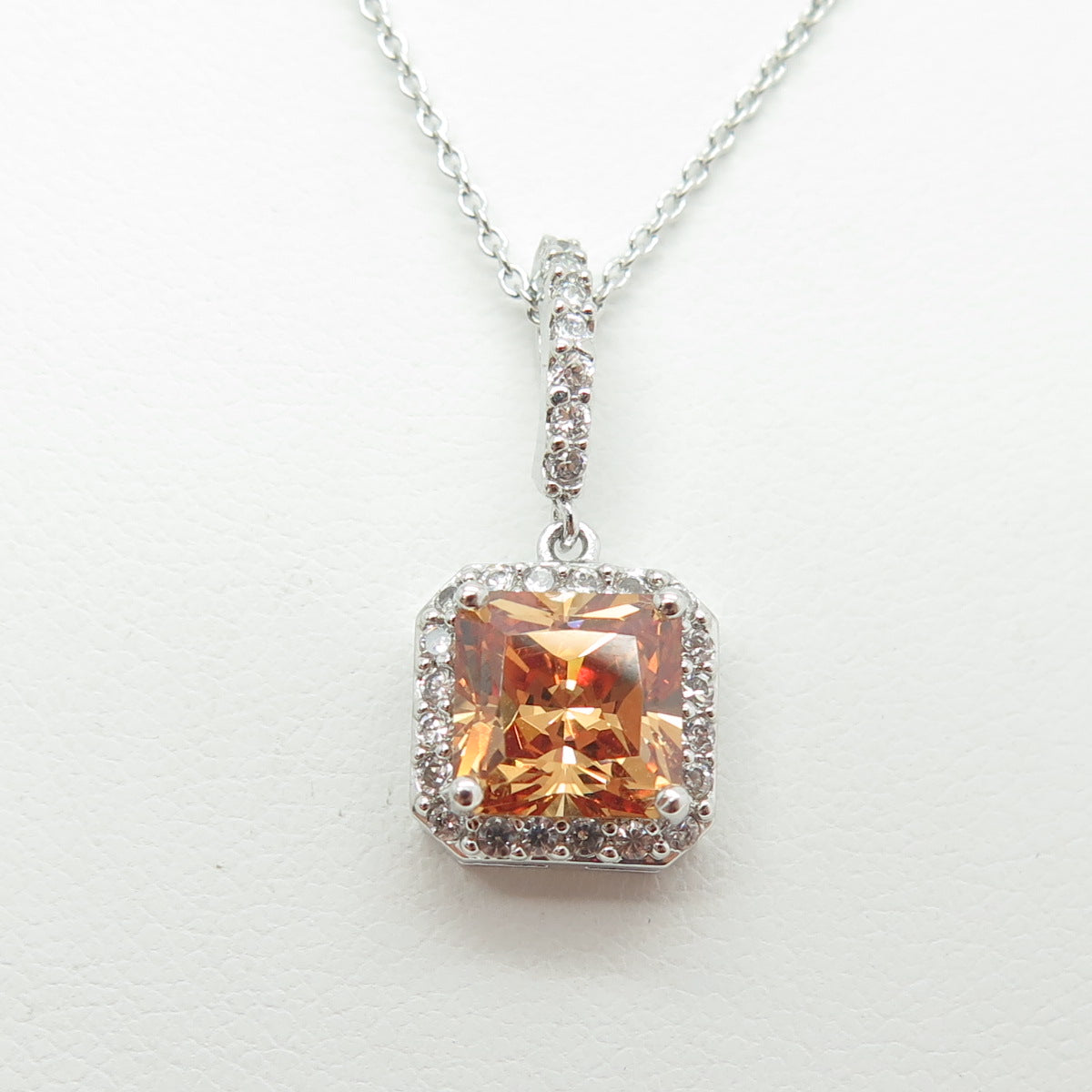 925 Sterling Silver Multi-Cut Champagne & White C Z Cable Chain Necklace 17-19"