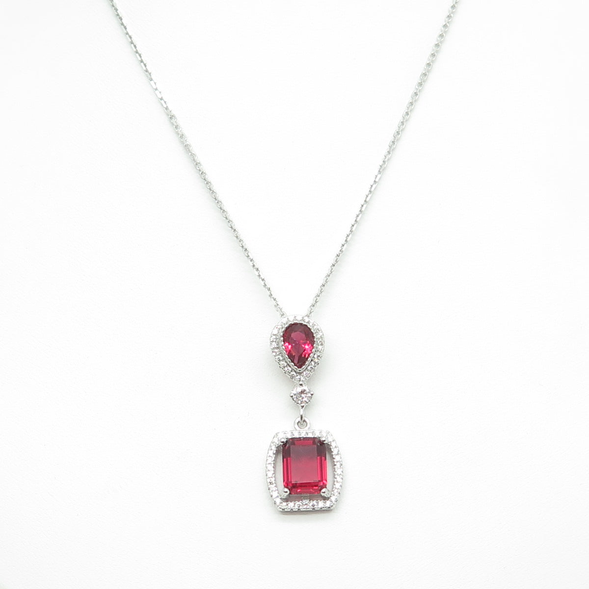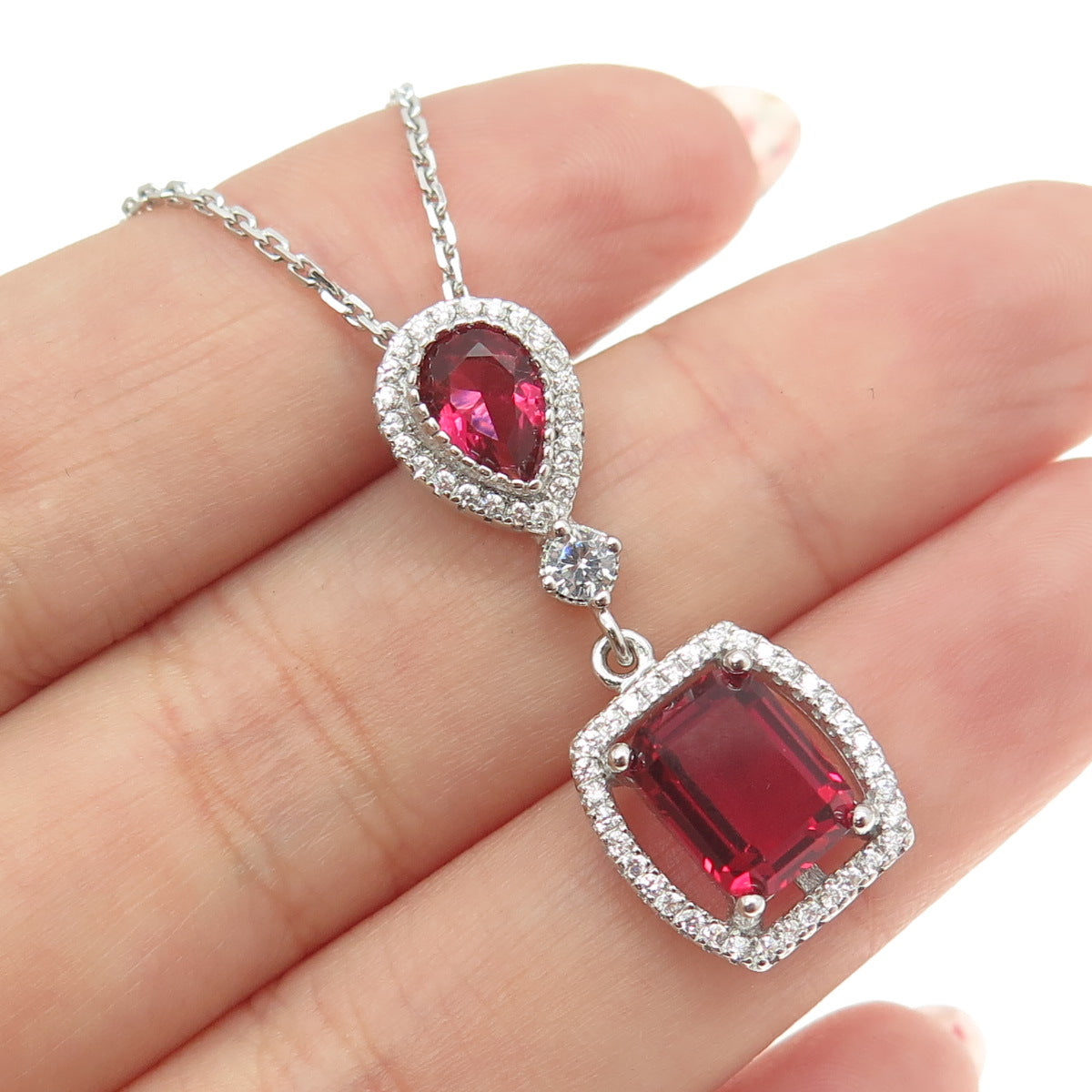 925 Sterling Silver Multi-Cut Pink & White C Z Cable Chain Necklace 16"