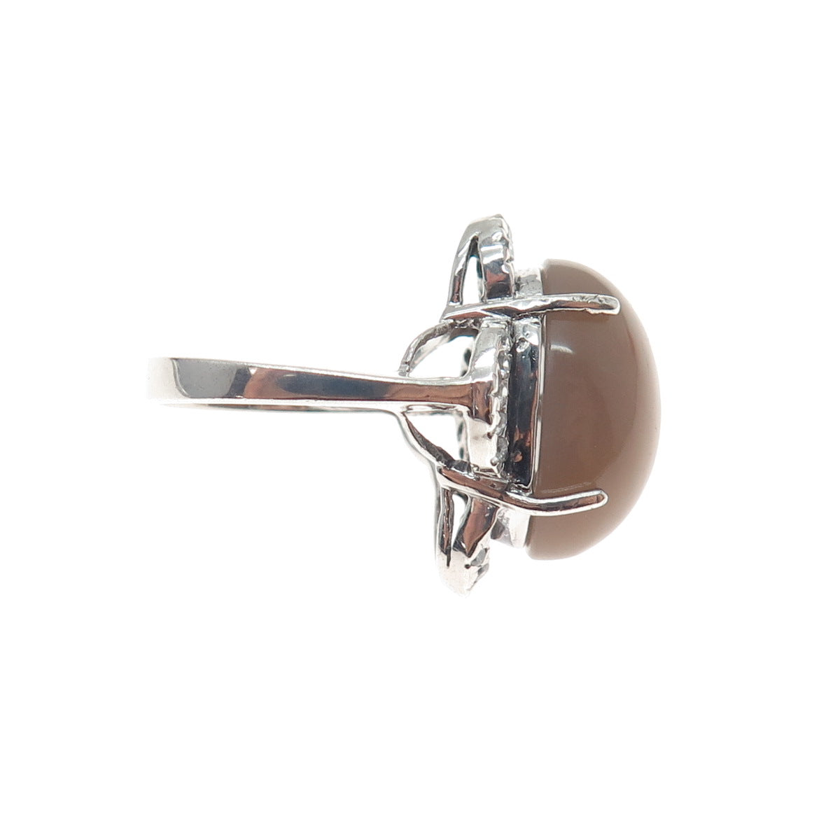 925 Sterling Silver Optic Fiber Cat's Eye & C Z Flower Ring Size 7.25