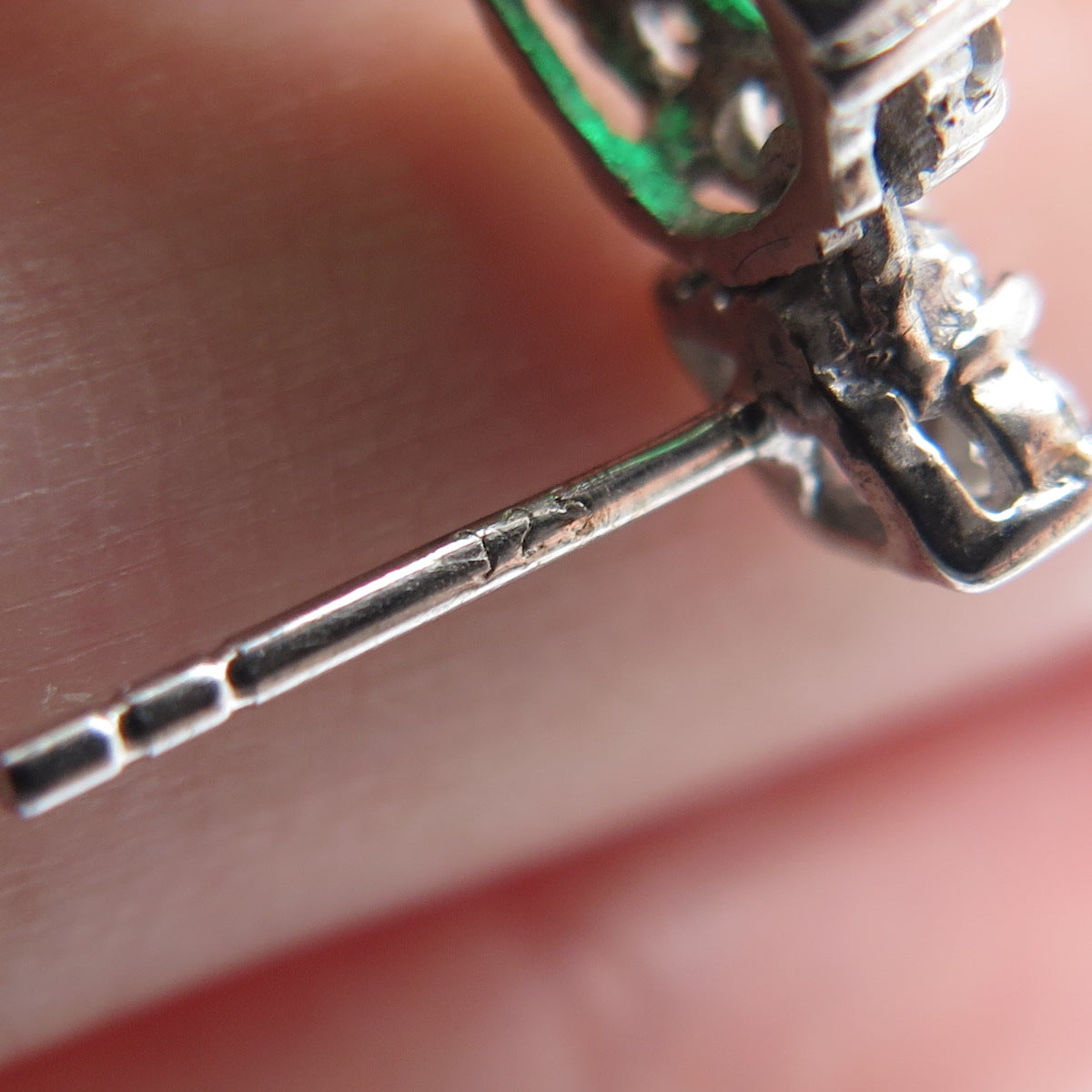 925 Sterling Silver Oval-Cut Green & Round-Cut White C Z Dangle Earrings