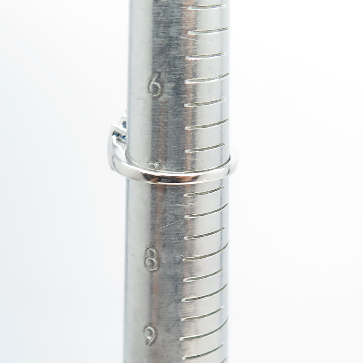 925 Sterling Silver Oval-Cut Ocean Blue C Z & Black Spinel Ring Size 7