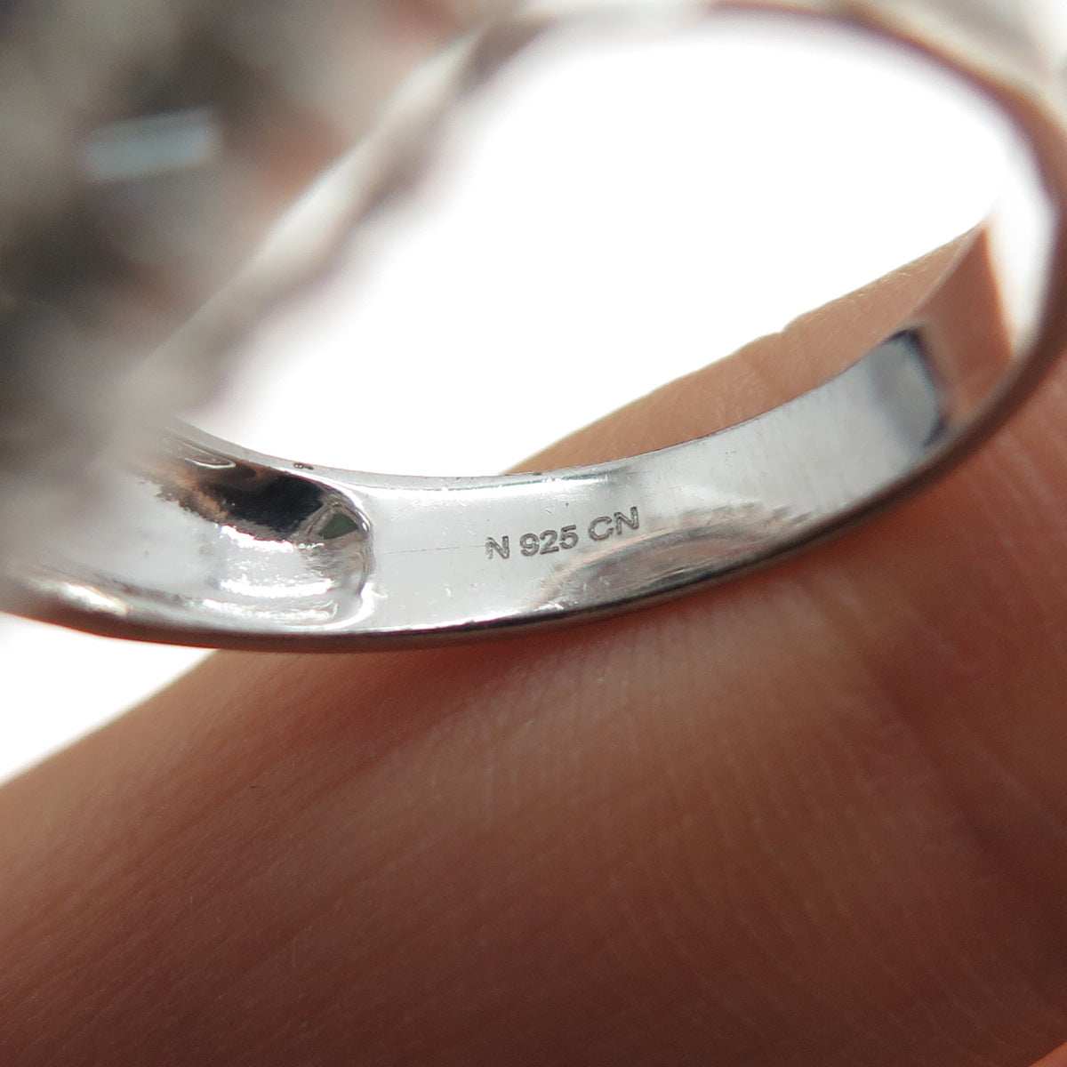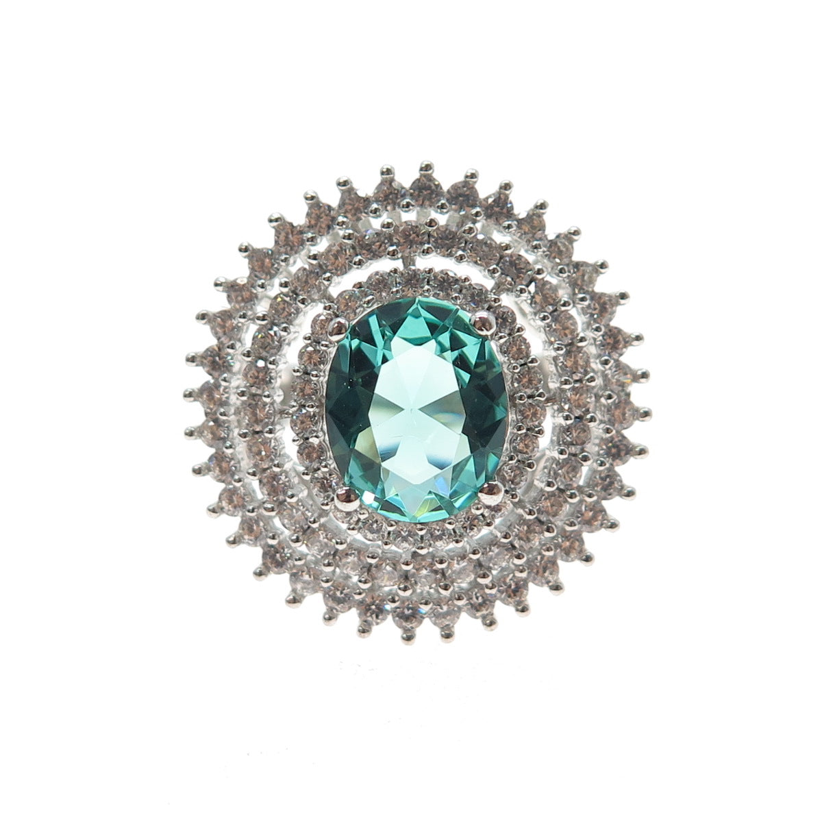 925 Sterling Silver Oval-Cut Paraiba & White C Z Bohemian Ring Size 8.25
