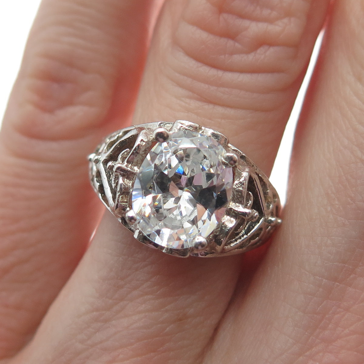925 Sterling Silver Oval-Cut Shaped C Z Ornate Heart Ring Size 6.5