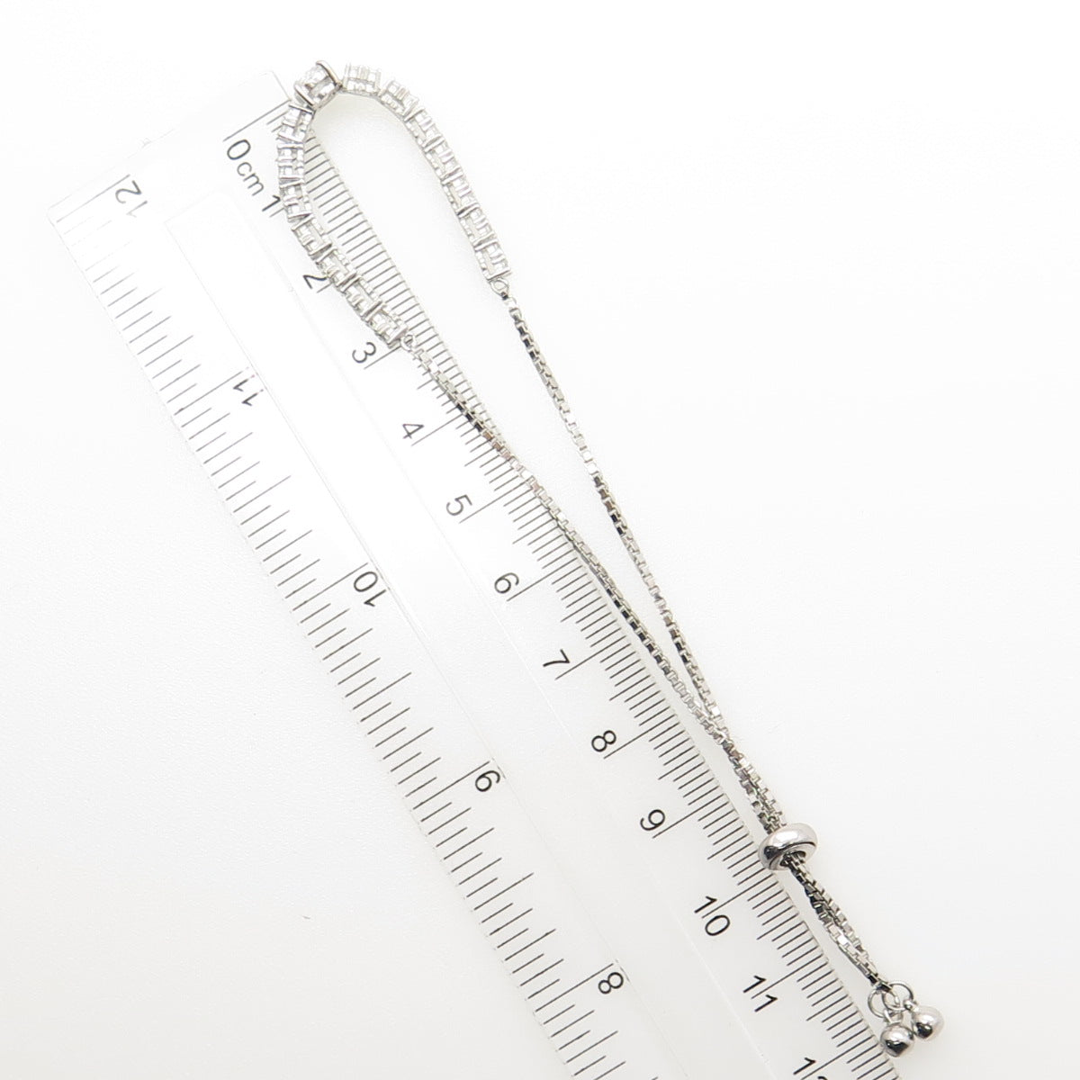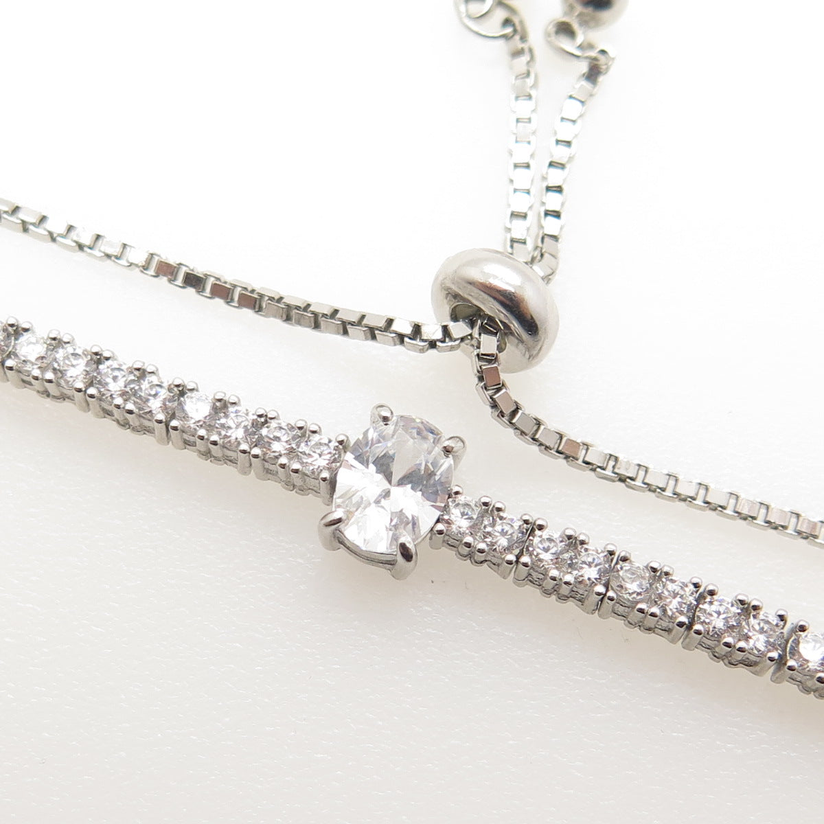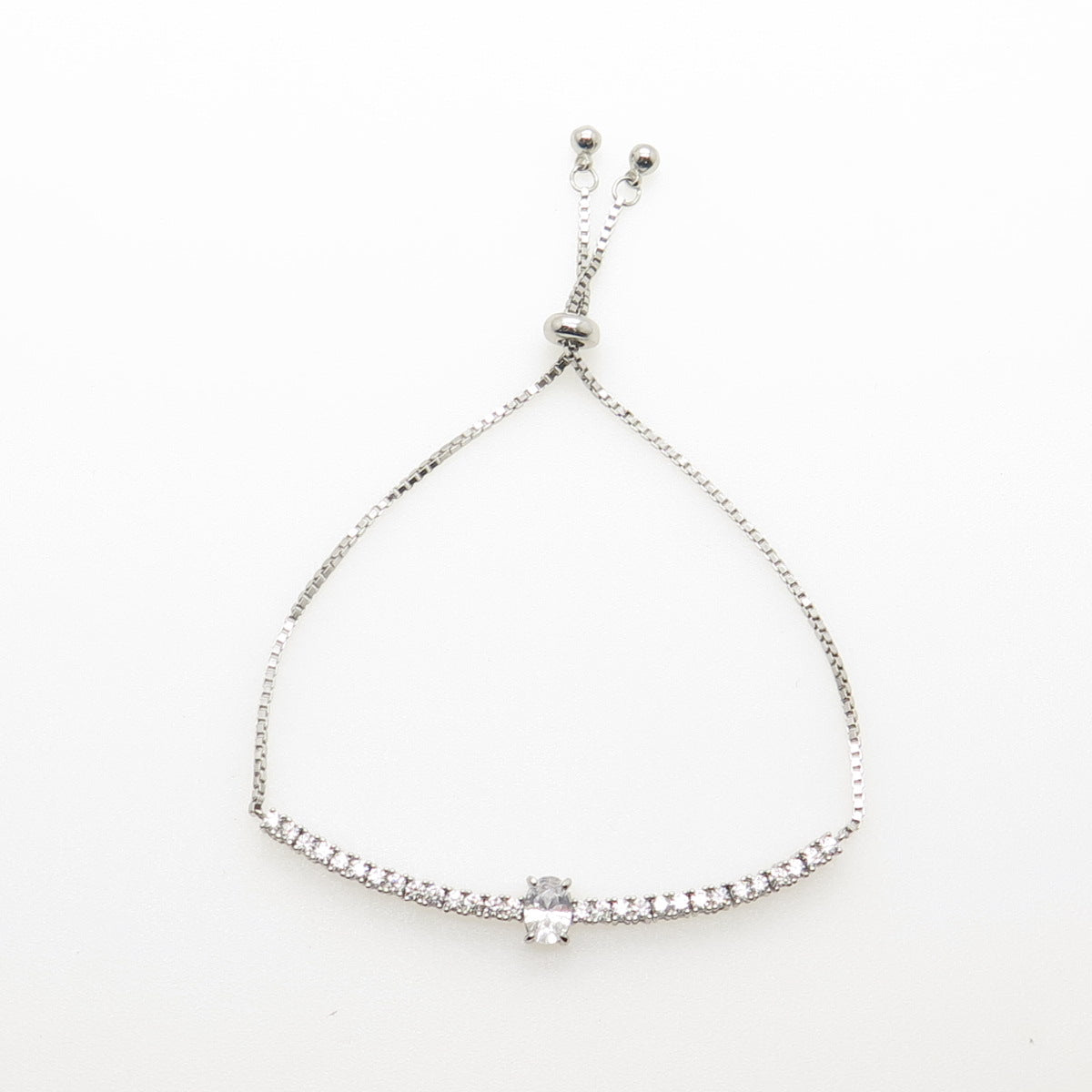 925 Sterling Silver Oval & Round-Cut C Z Tennis Bolo Adjustable Bracelet 6-9"