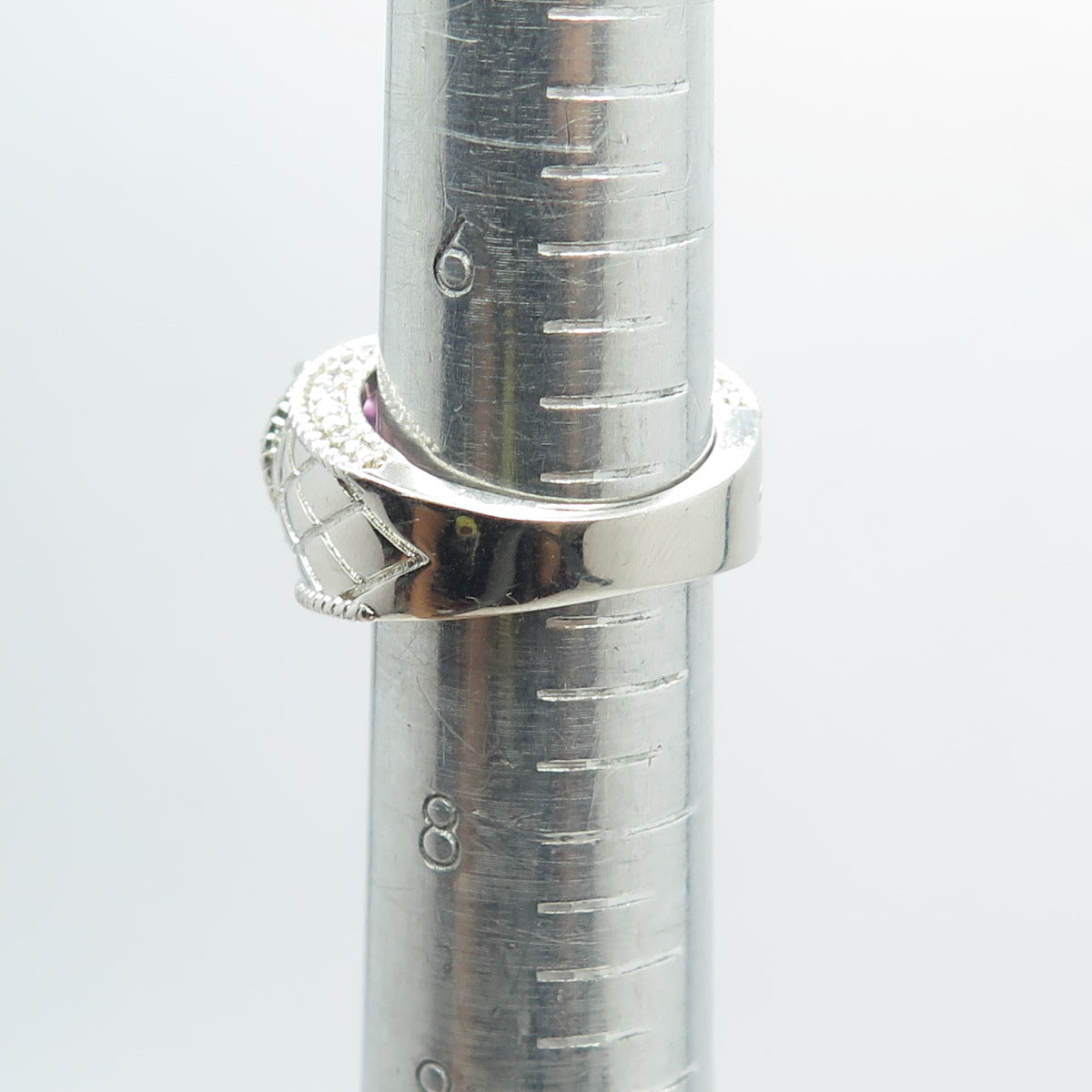 925 Sterling Silver Oval & Round-Cut Pink & White C Z Ring Size 7.25