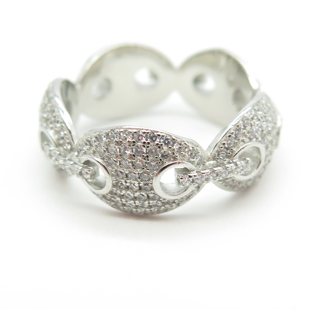 925 Sterling Silver Pave C Z Chain Band Ring Size 8.25