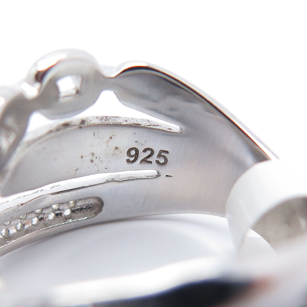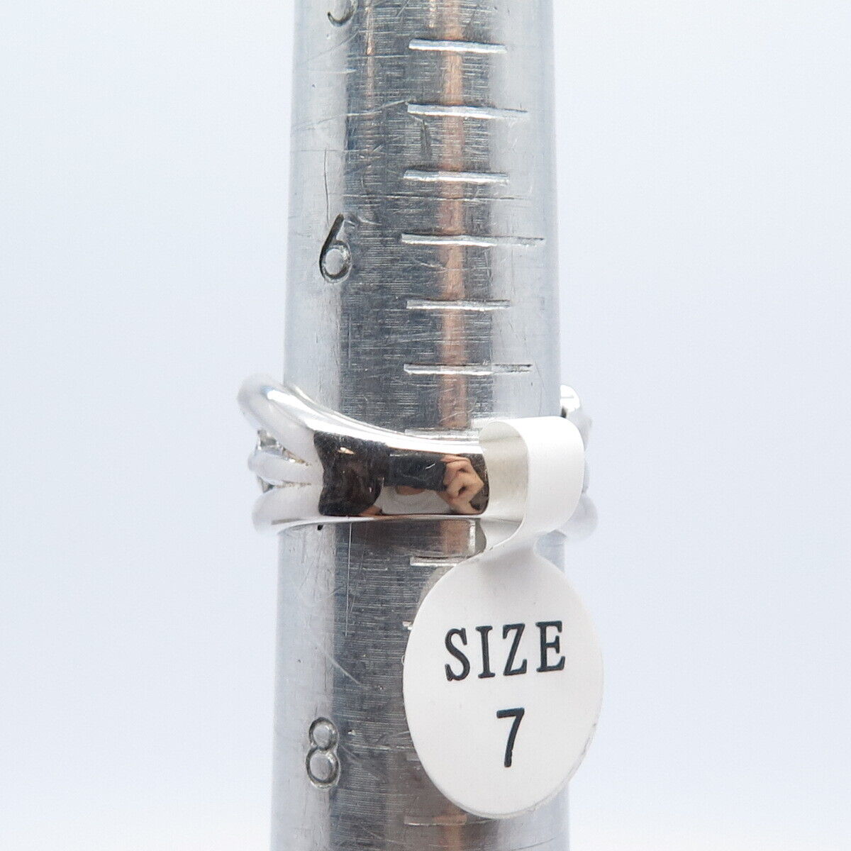 925 Sterling Silver Pave C Z Chain Crossover Ring Size 7