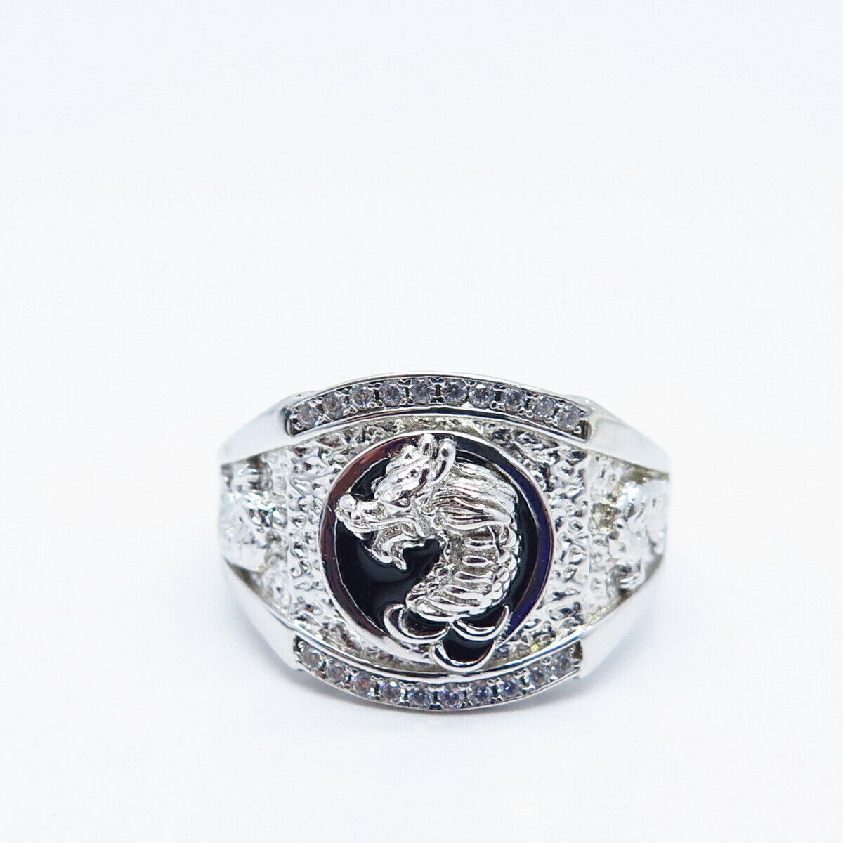 925 Sterling Silver Pave C Z & Enamel Wild Animal Ring Size 9