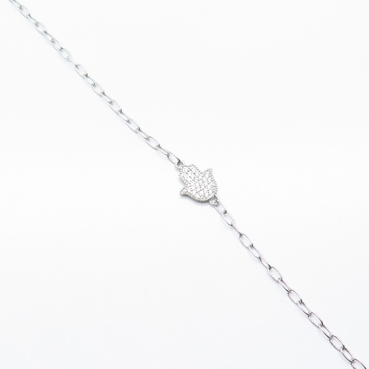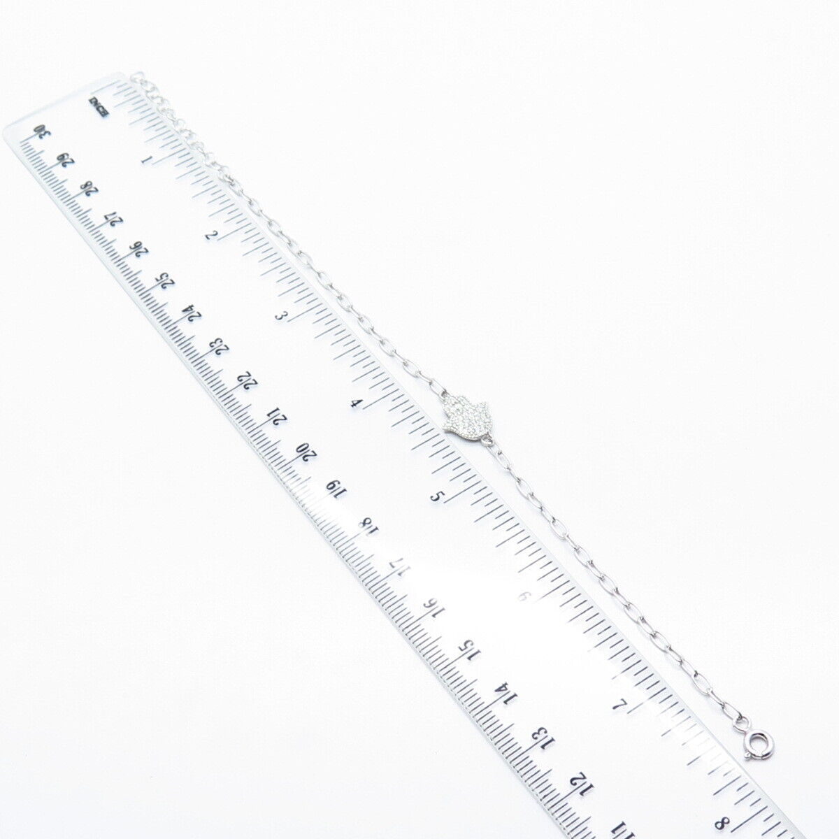 925 Sterling Silver Pave C Z Hamsa / Hand of Fatima Rolo Link Bracelet 7.75"
