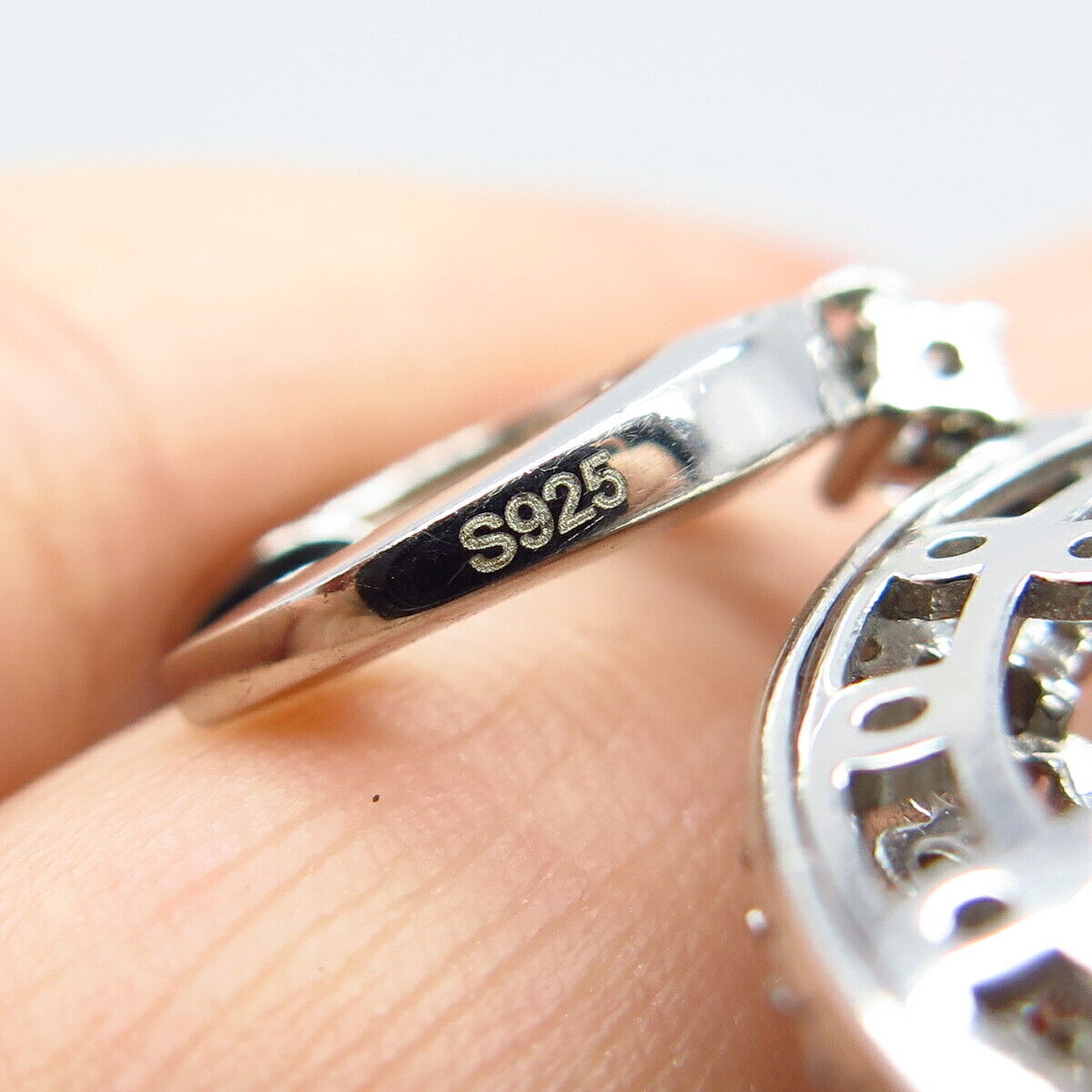 925 Sterling Silver Pave C Z Ornate Dangling Earrings