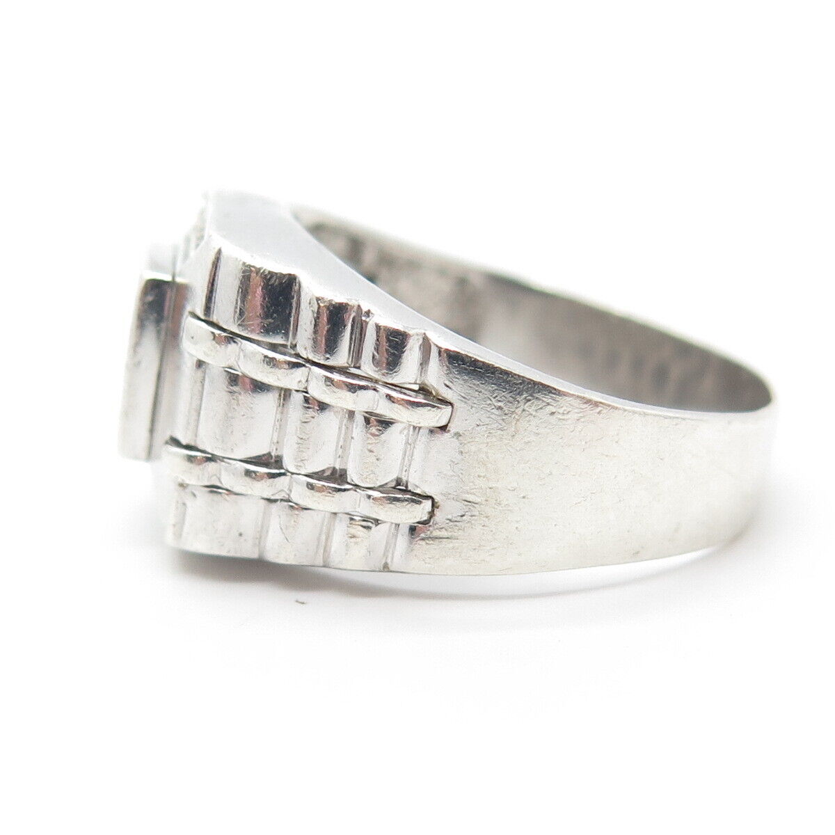 925 Sterling Silver Pave C Z Ribbed Ring Size 11.5