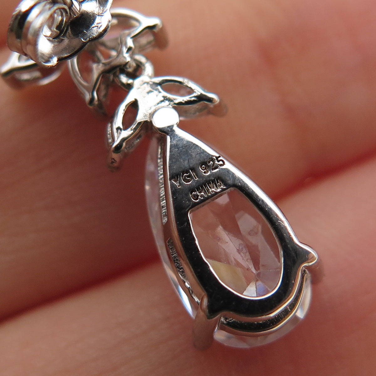 925 Sterling Silver Pear Marquise & Round-Cut C Z Dangle Earrings