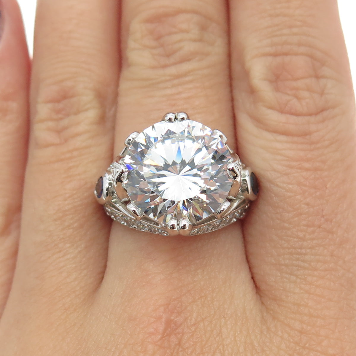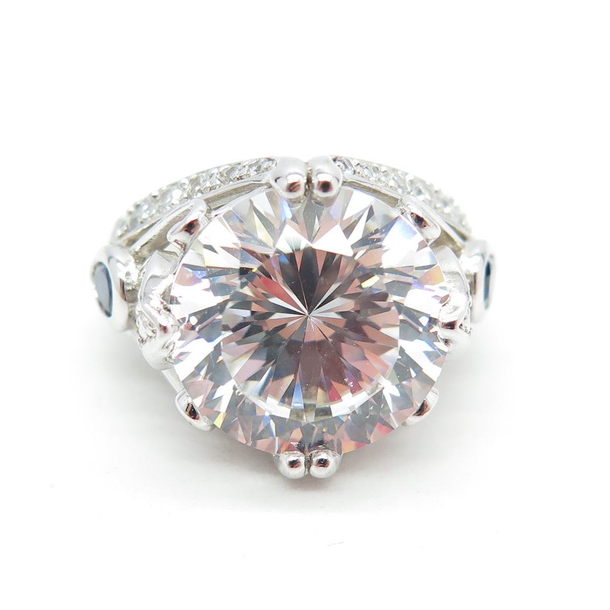 925 Sterling Silver Pear & Round-Cut Blue & White C Z Ring Size 7.25