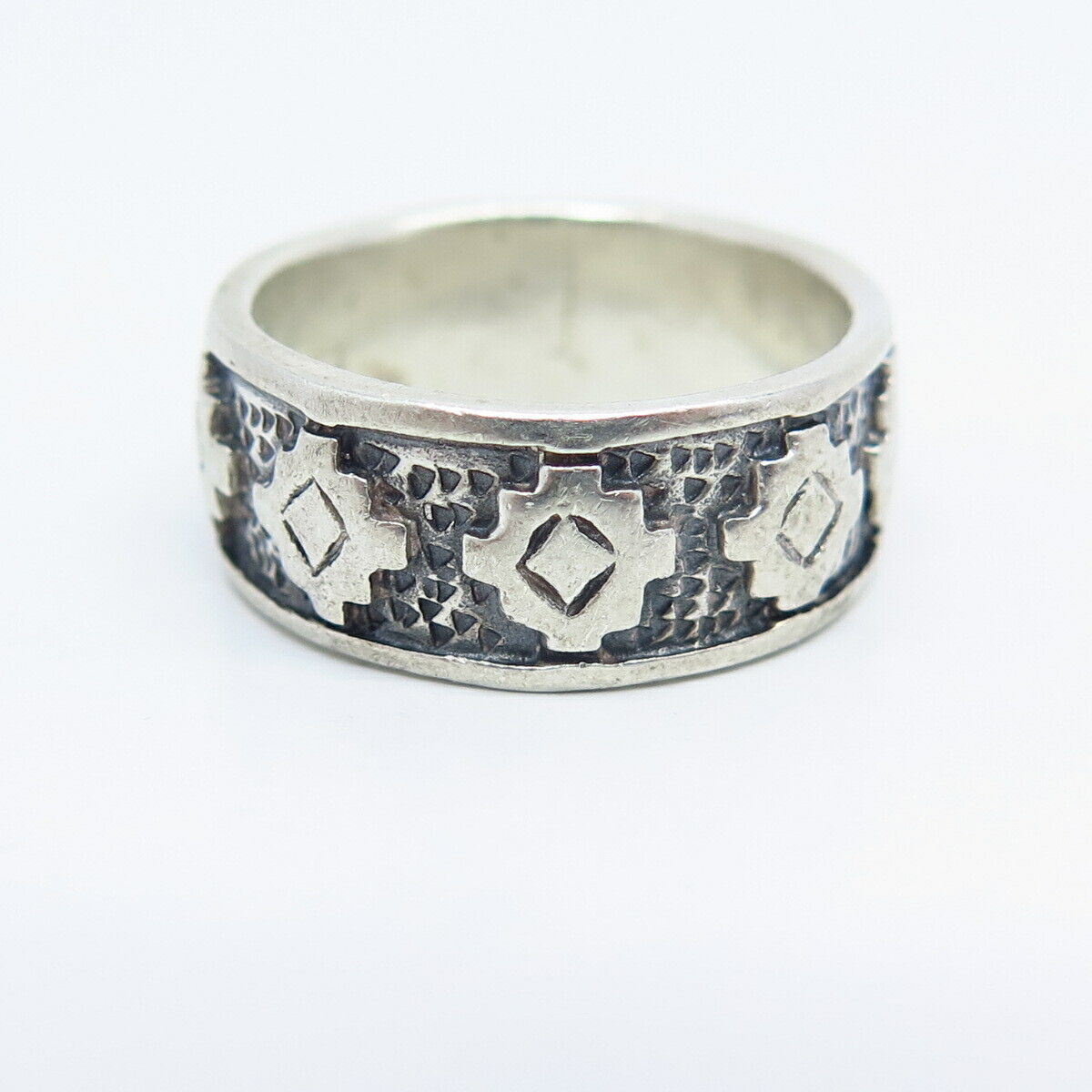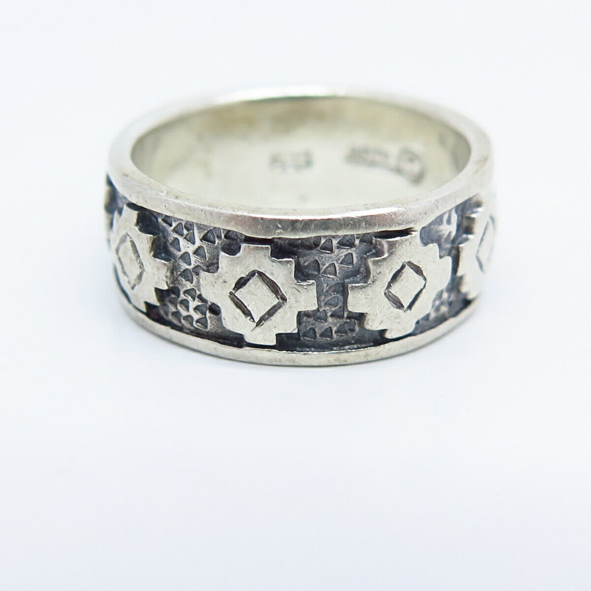 925 Sterling Silver Peter Stone Tribal Design Band Ring Size 5 1/4