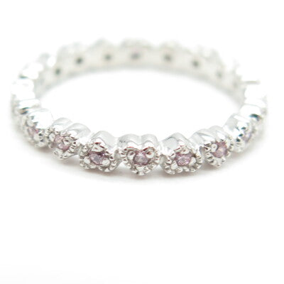 925 Sterling Silver Pink C Z Heart Band Ring Size 4.75