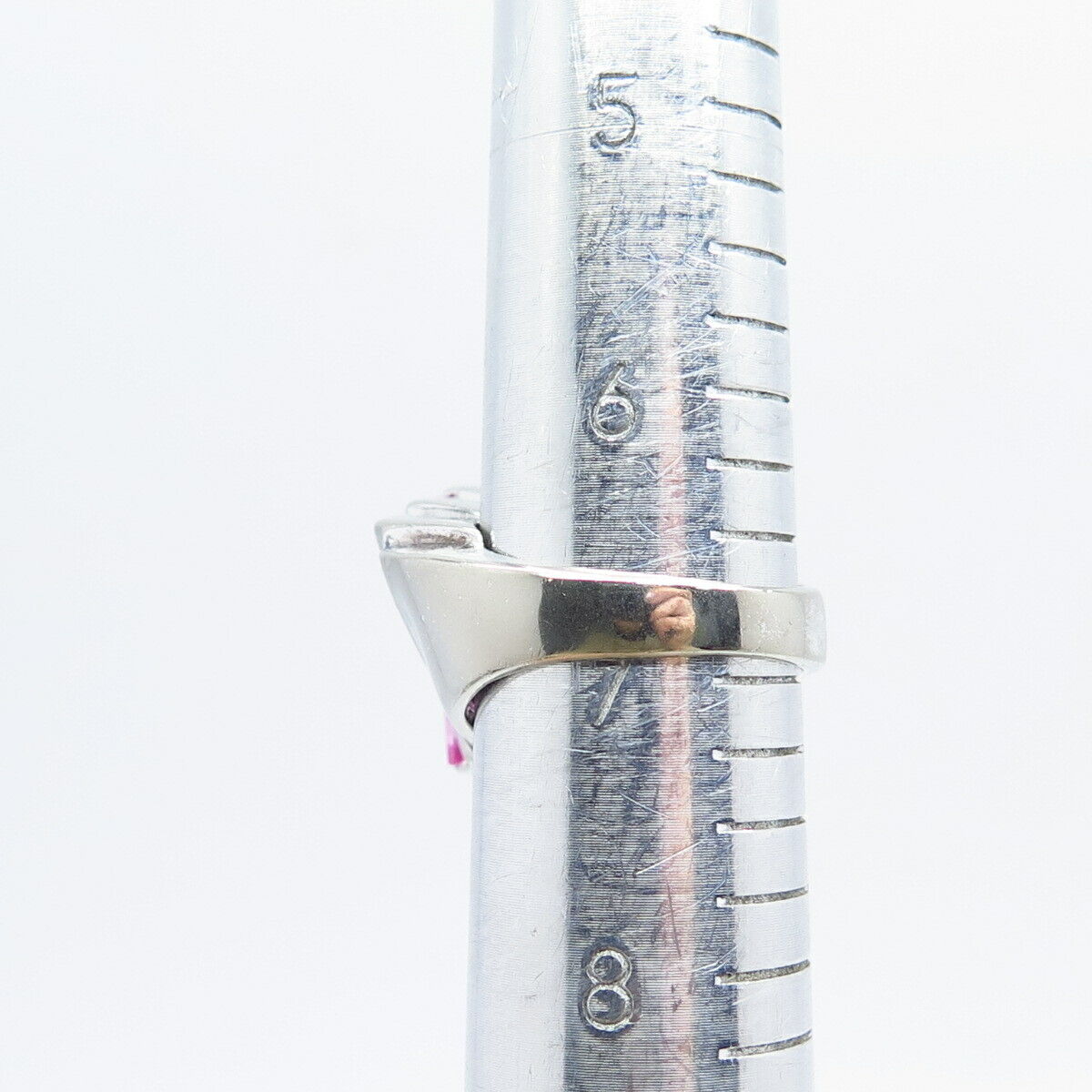 925 Sterling Silver Pink C Z Ribbed Ring Size 6.75