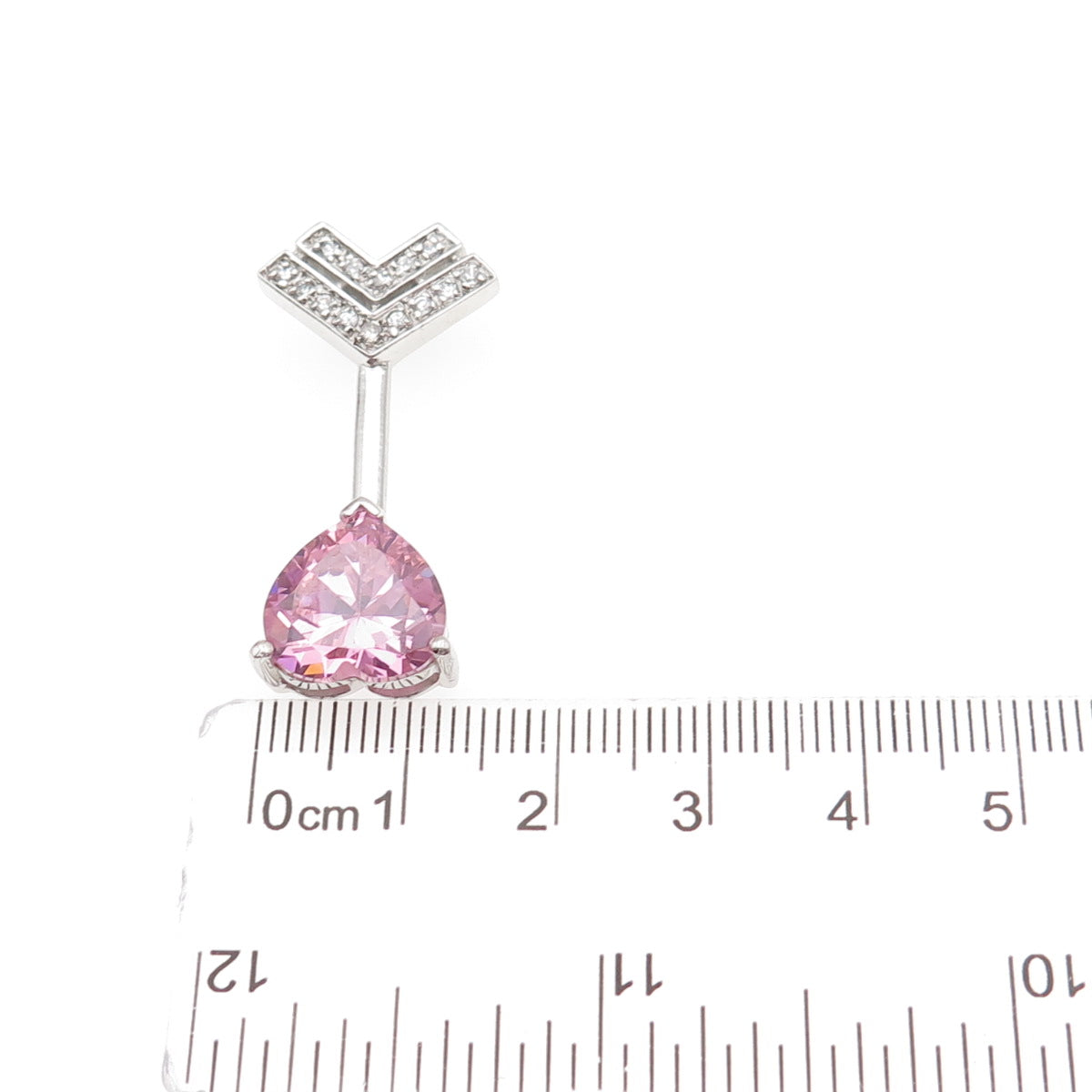 925 Sterling Silver Pink & White C Z Heart Arrow Slide Charm Pendant
