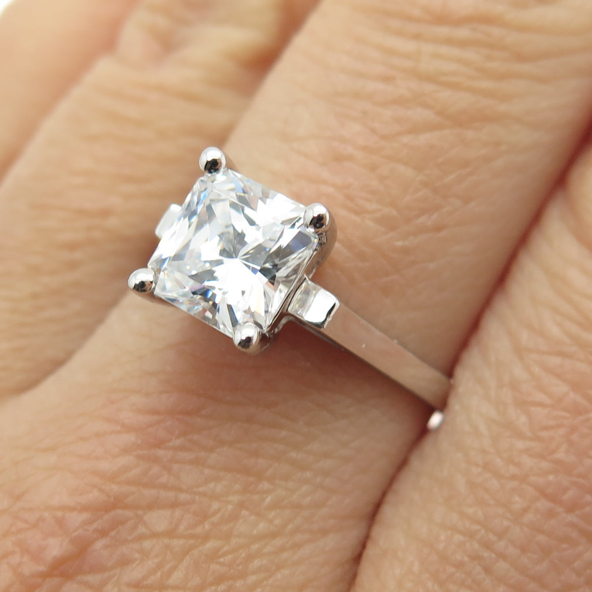 925 Sterling Silver Princess-Cut C Z Engagement Ring Size 9.25