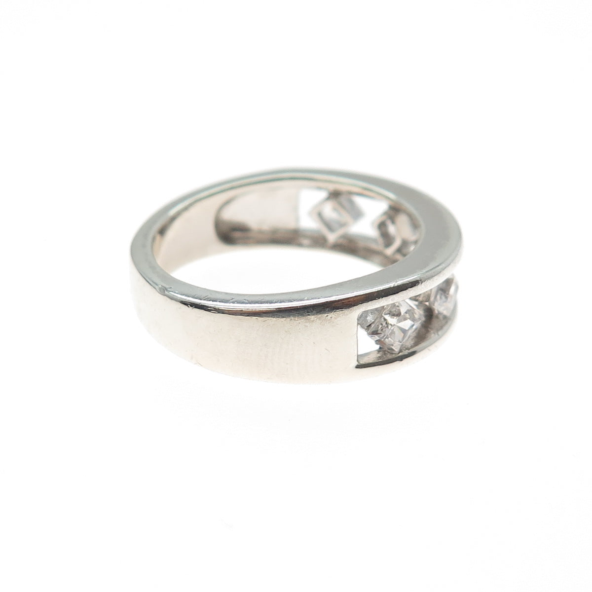 925 Sterling Silver Princess-Cut C Z Half Eternity Band Ring Size 7