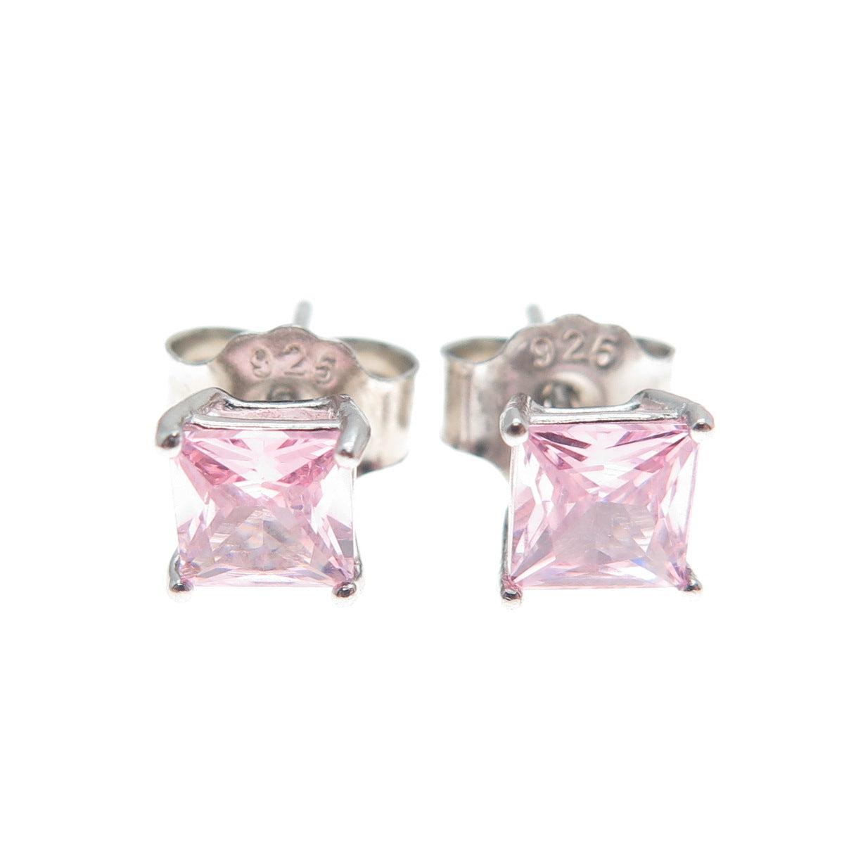 925 Sterling Silver Princess-Cut Pink C Z Stud Earrings