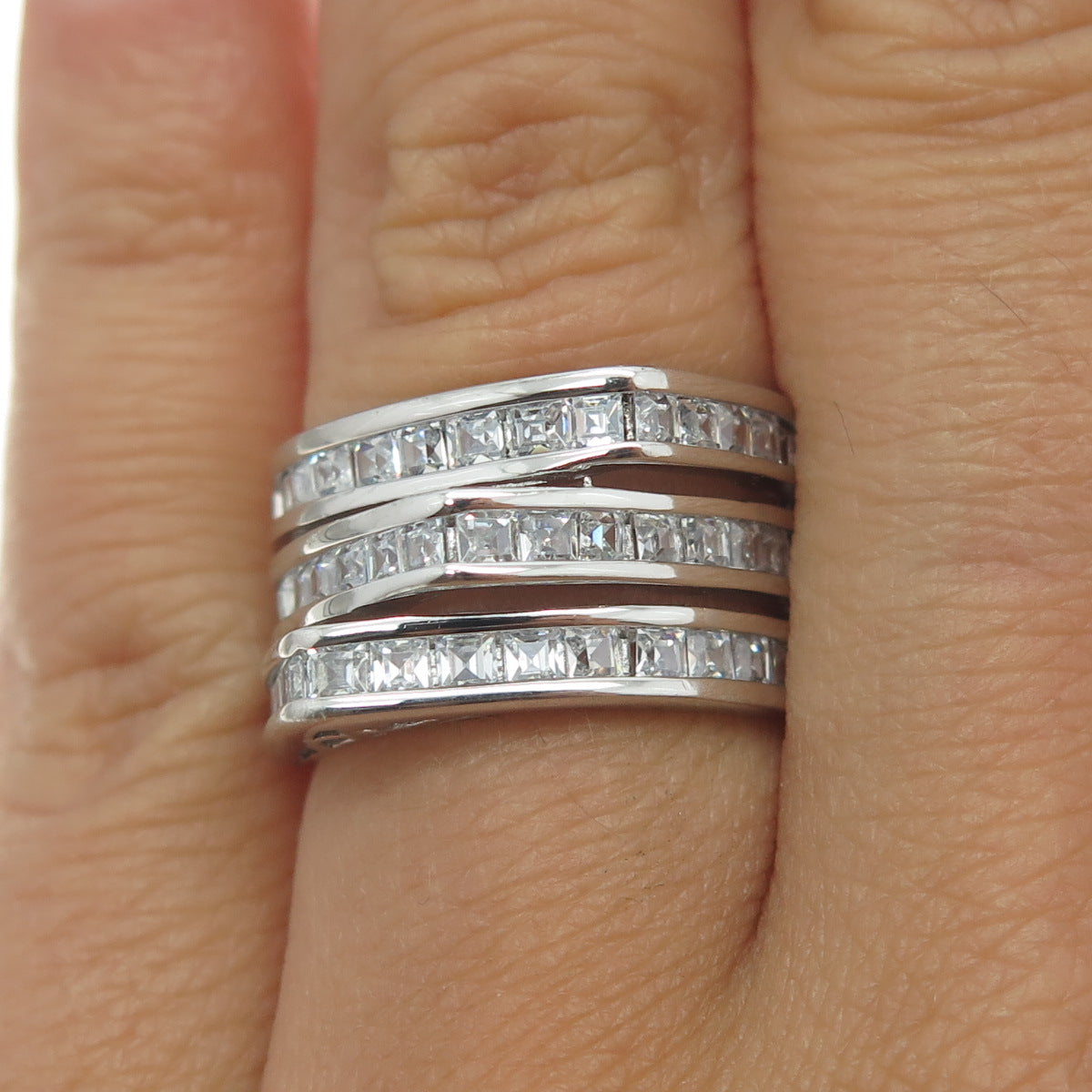 925 Sterling Silver Princess-Cut Shaped C Z Modernist Ring Size 6.25