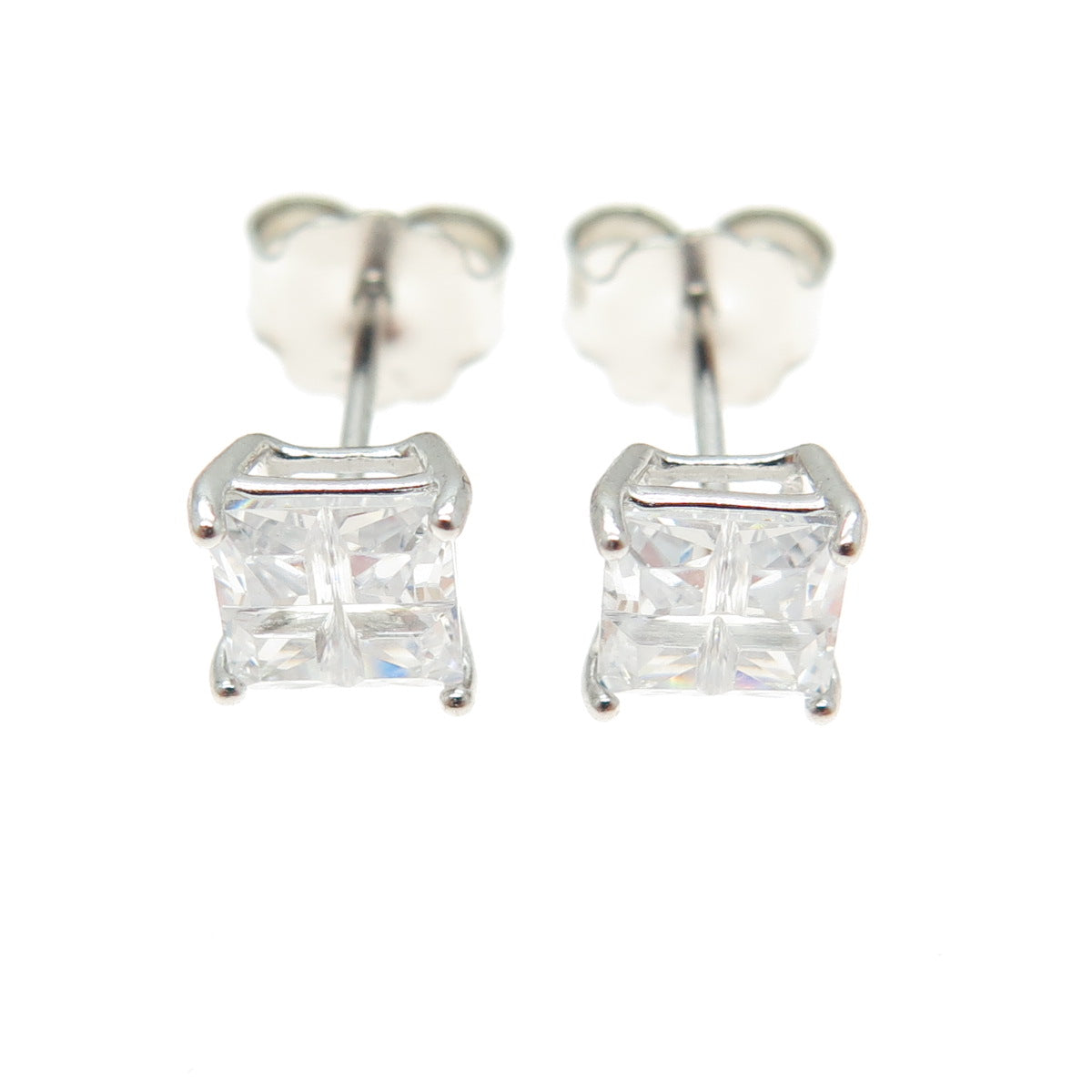 925 Sterling Silver Princess-Cut Shaped White C Z Stud Earrings