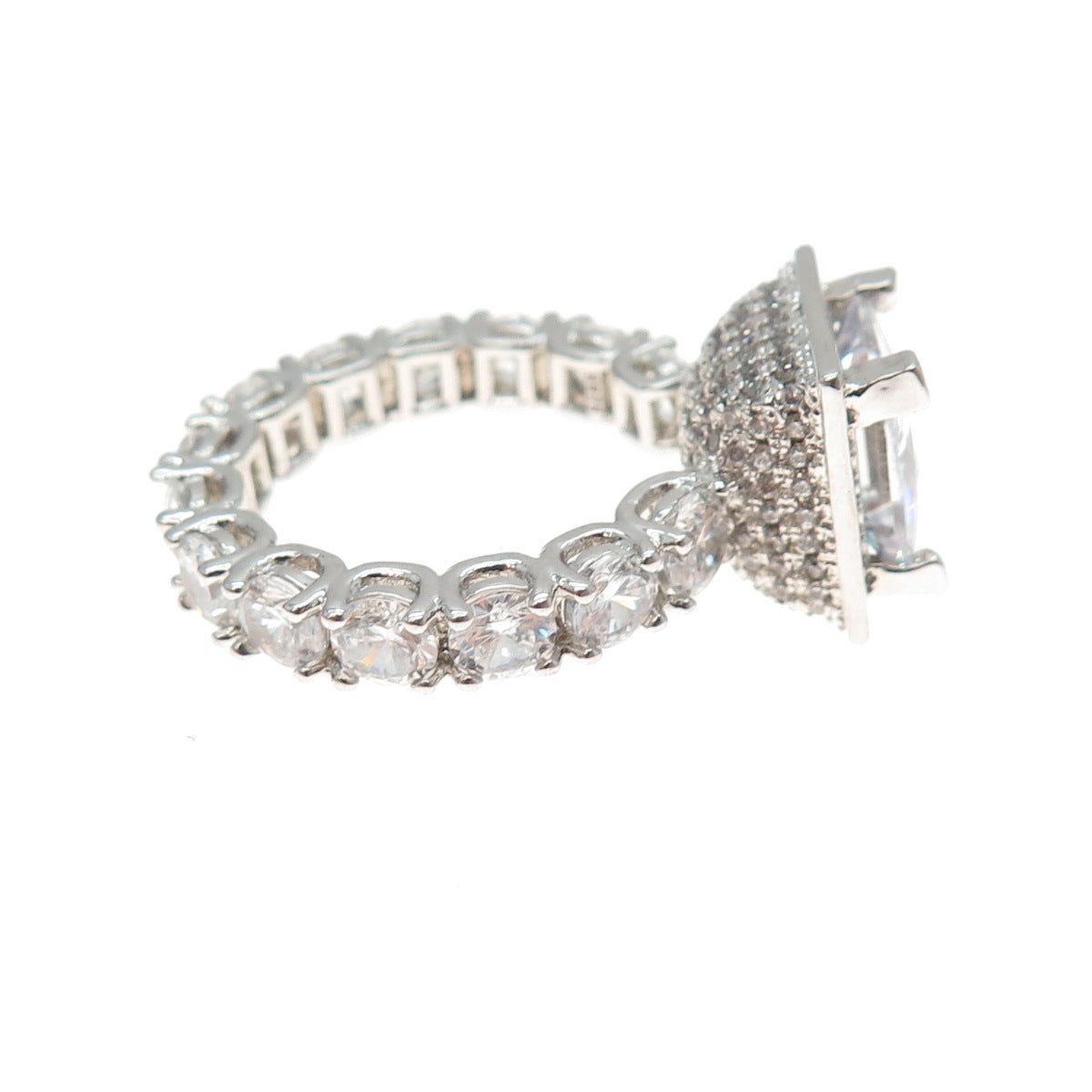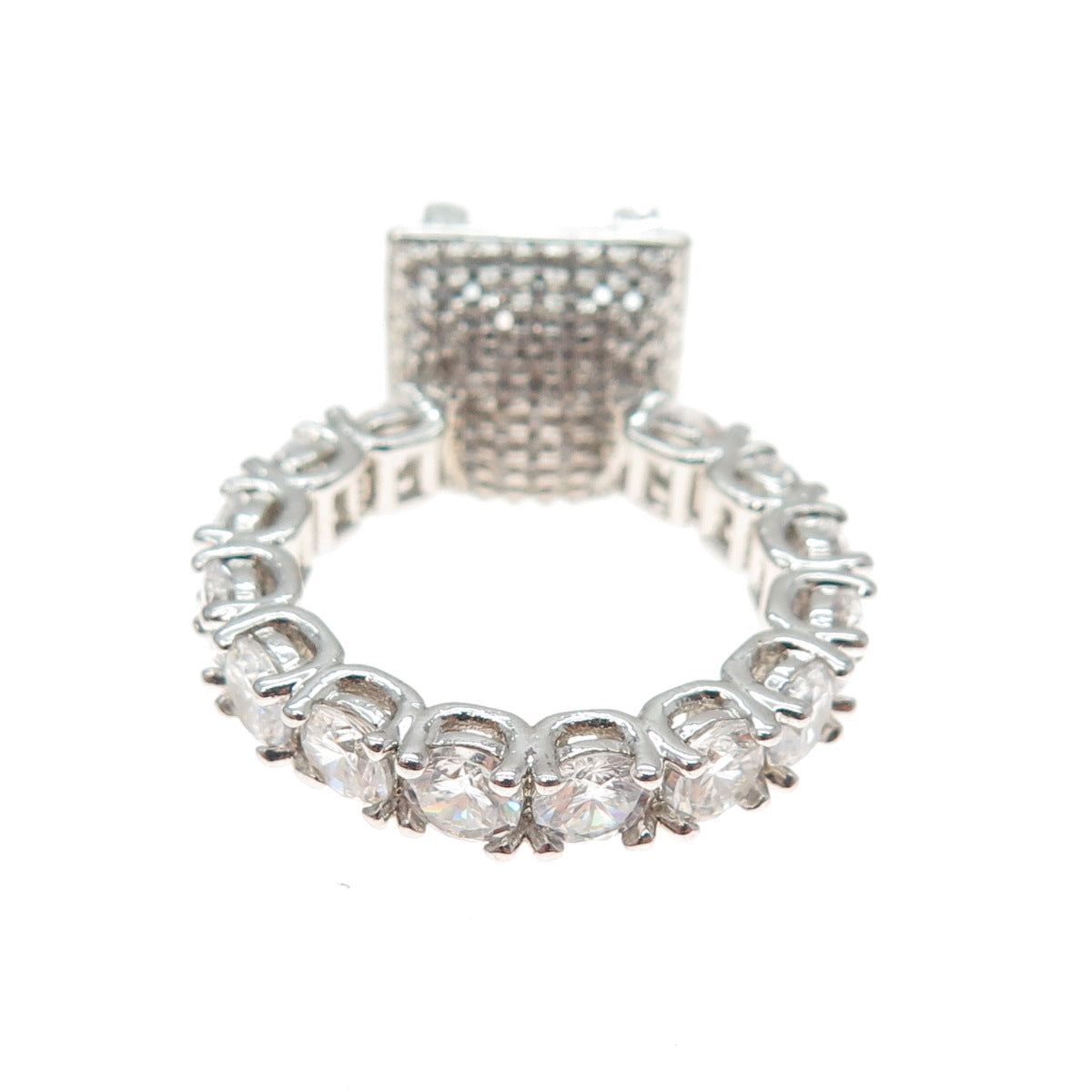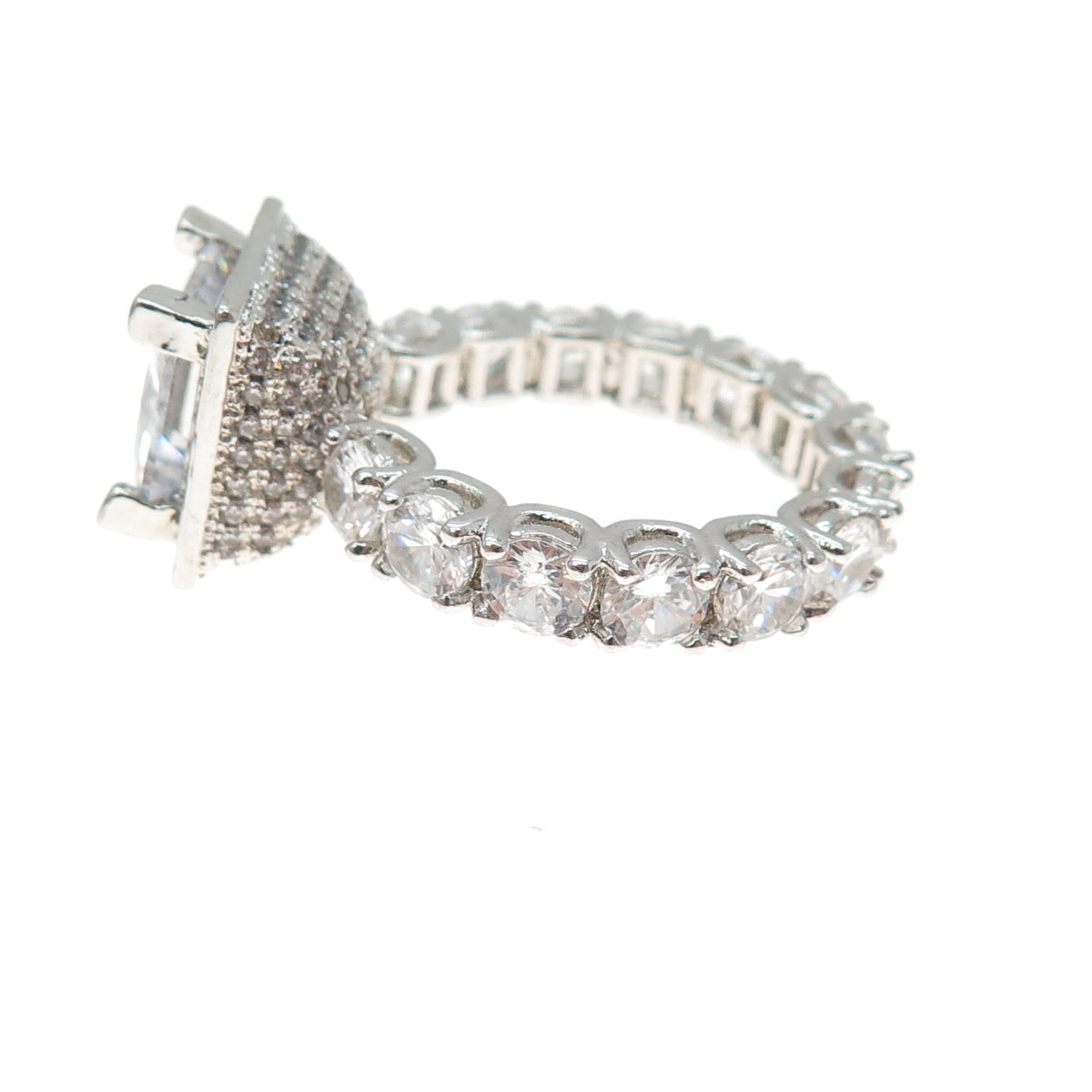 925 Sterling Silver Princess & Round-Cut C Z Engagement Ring Size 6.25