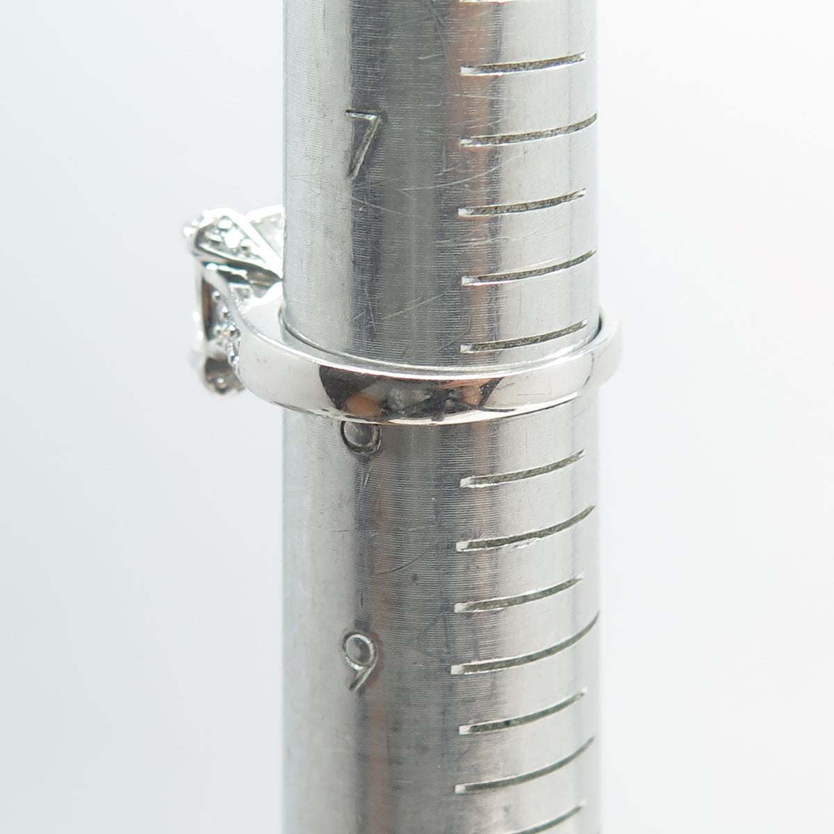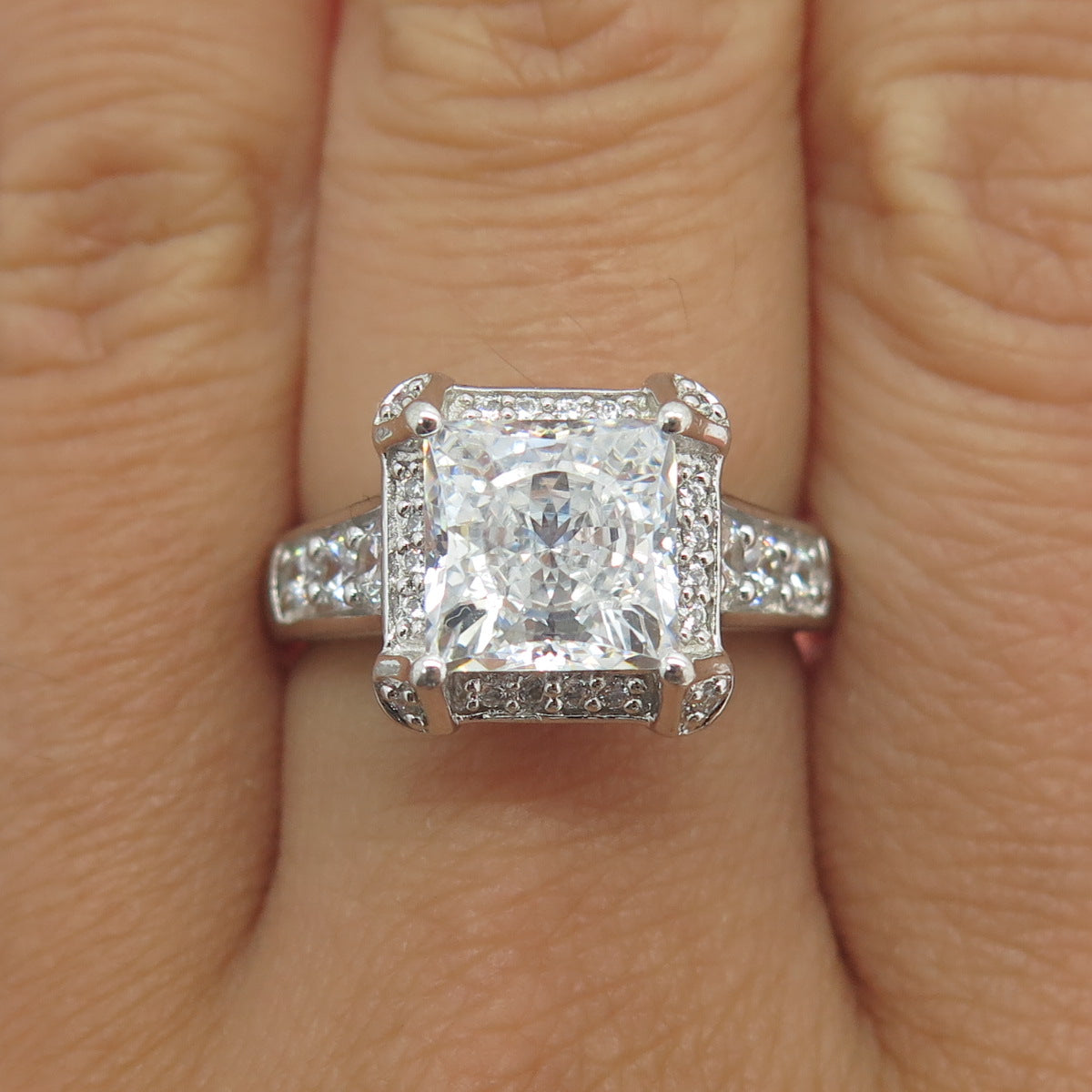 925 Sterling Silver Princess & Round-Cut C Z Engagement Ring Size 8