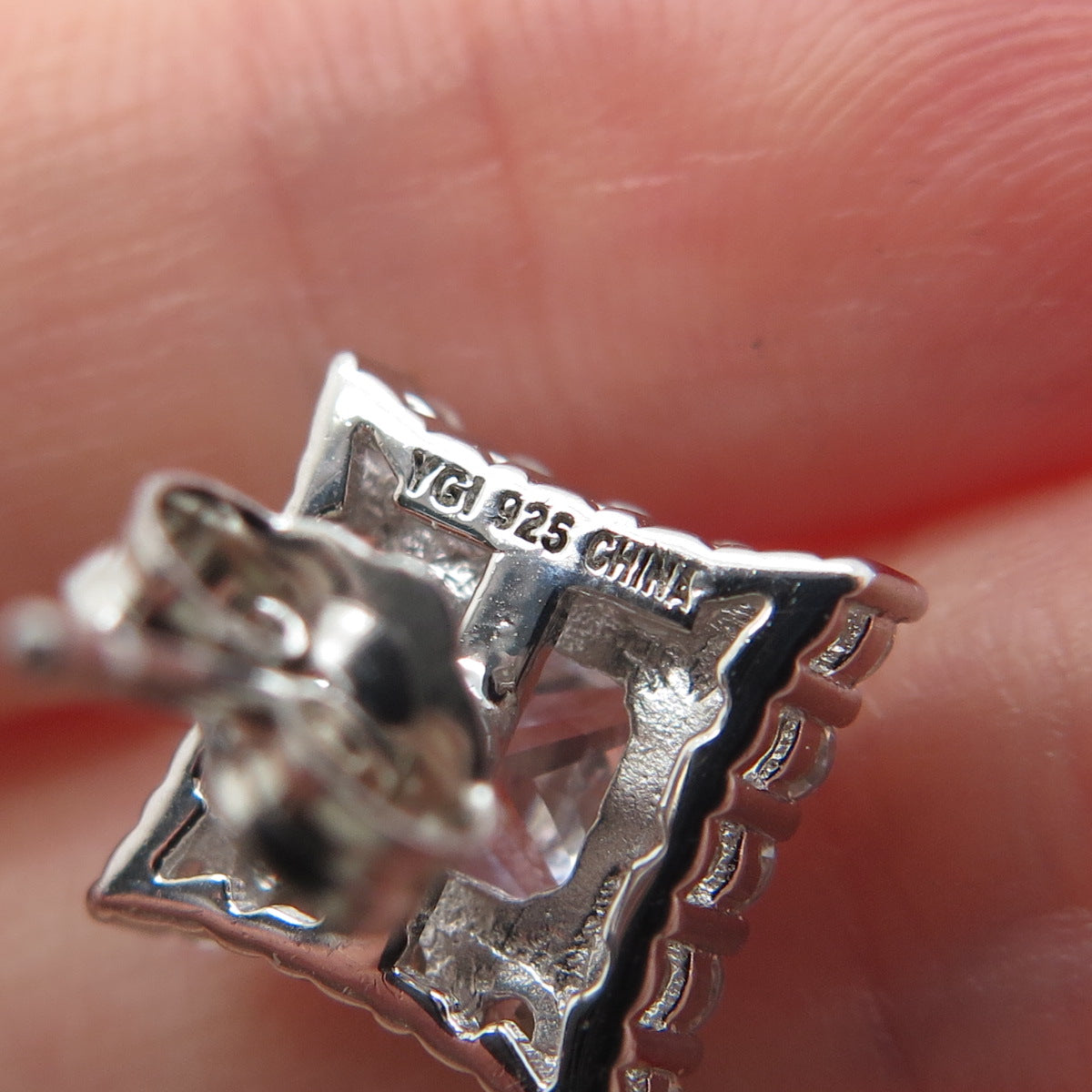 925 Sterling Silver Princess & Round-Cut C Z Sparkle Square Stud Earrings