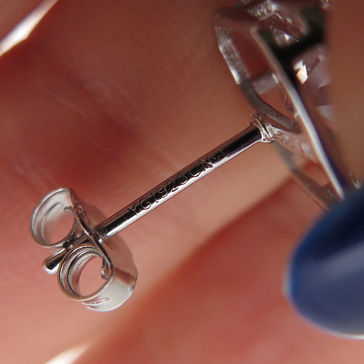 925 Sterling Silver Princess & Round-Cut C Z Stud Earrings