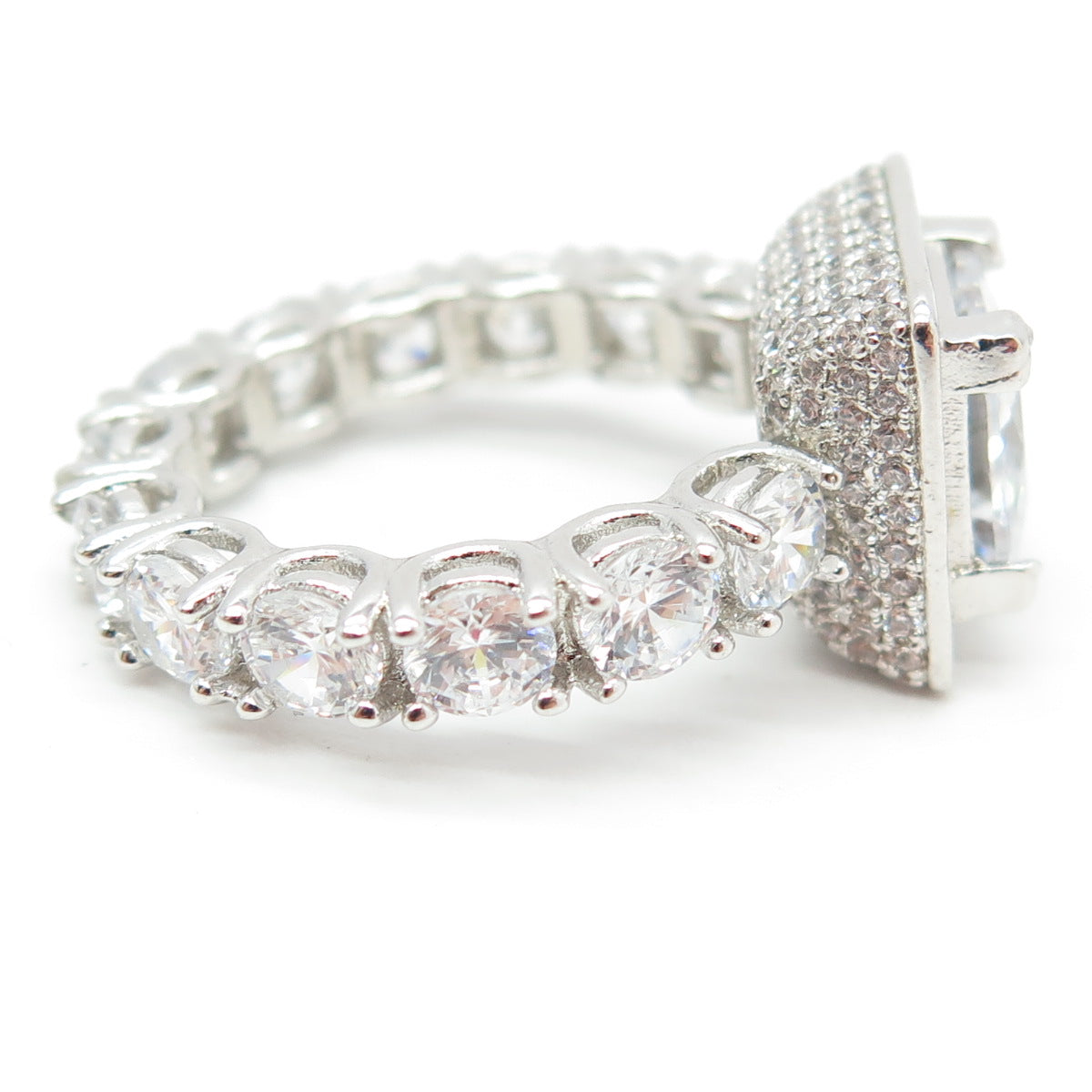 925 Sterling Silver Princess & Round-Cut Shaped C Z Ring Size 6.25