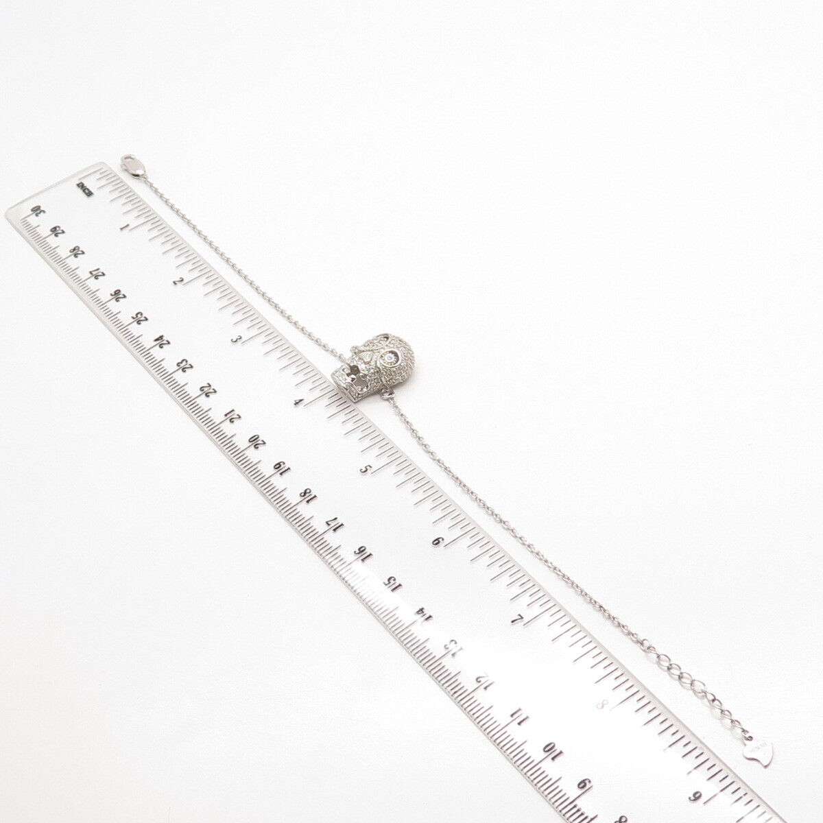 925 Sterling Silver Prizm C Z Skull Charm Cable Link Bracelet 8.5"