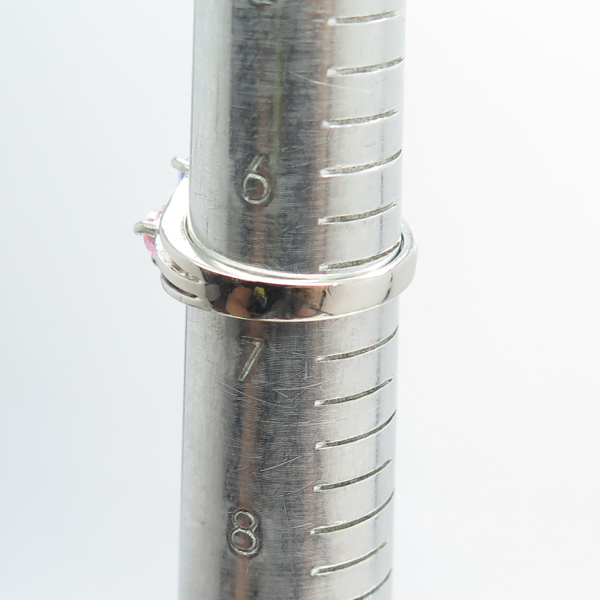 925 Sterling Silver Purple & Pink C Z Heart Ring Size 6.75