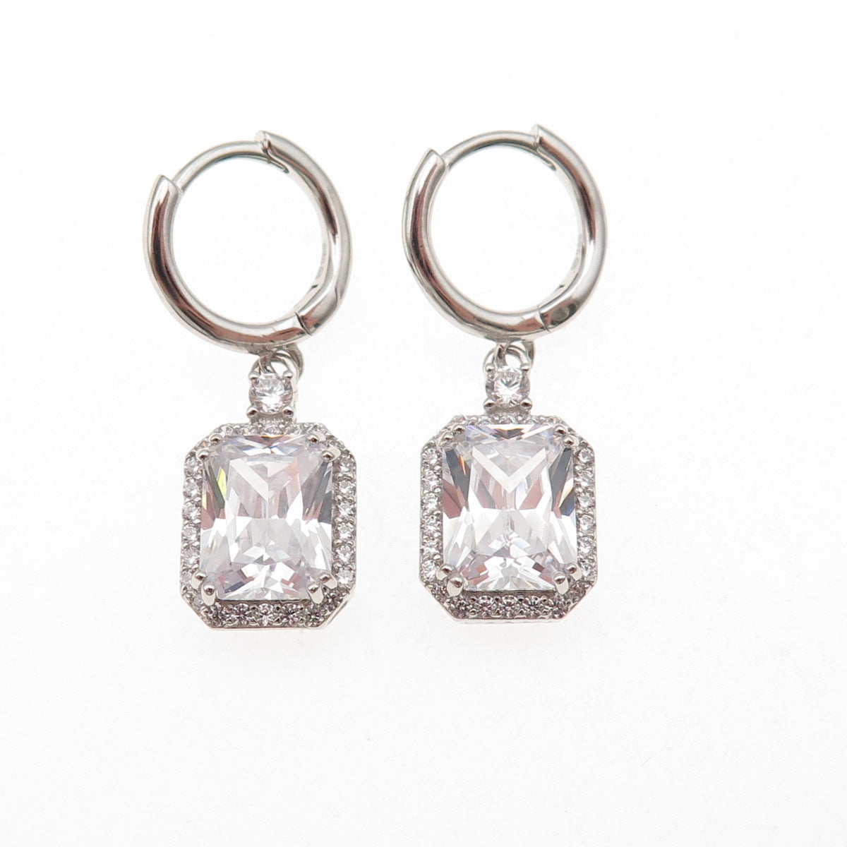 925 Sterling Silver Radiant & Round-Cut C Z Dangle Earrings