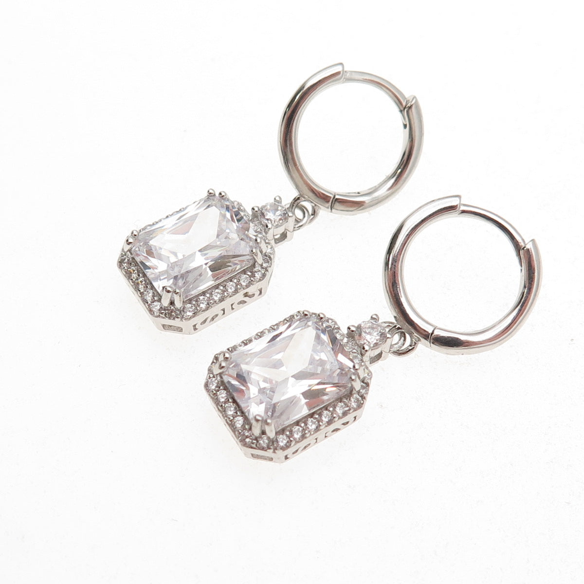 925 Sterling Silver Radiant & Round-Cut C Z Dangle Earrings