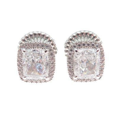 925 Sterling Silver Radiant & Round-Cut C Z Stud Earrings