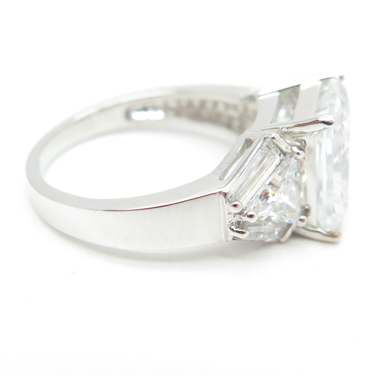 925 Sterling Silver Radiant & Tapered Baguette-Cut Shaped C Z Ring Size 7