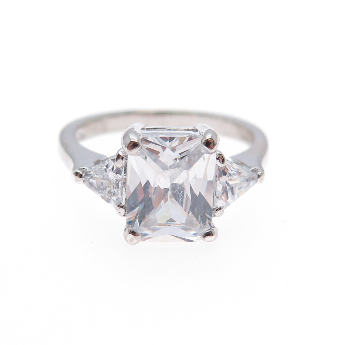 925 Sterling Silver Radiant & Triangle-Cut C Z Engagement Ring Size 7
