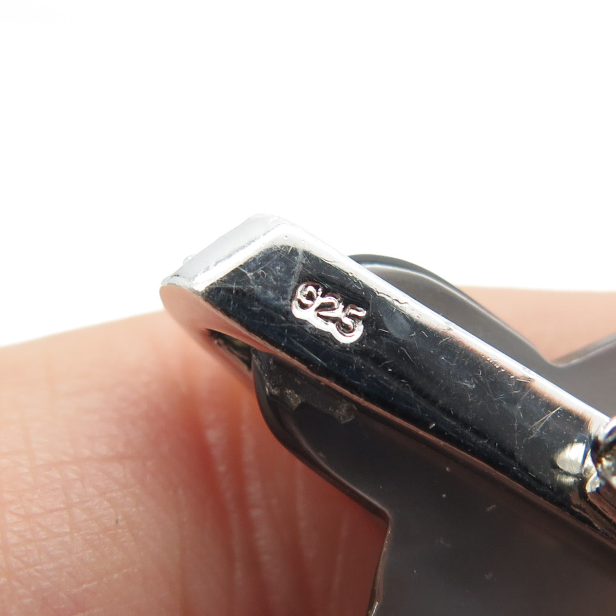 925 Sterling Silver Real Abalone Shell & C Z Leaf Modernist Pin Brooch
