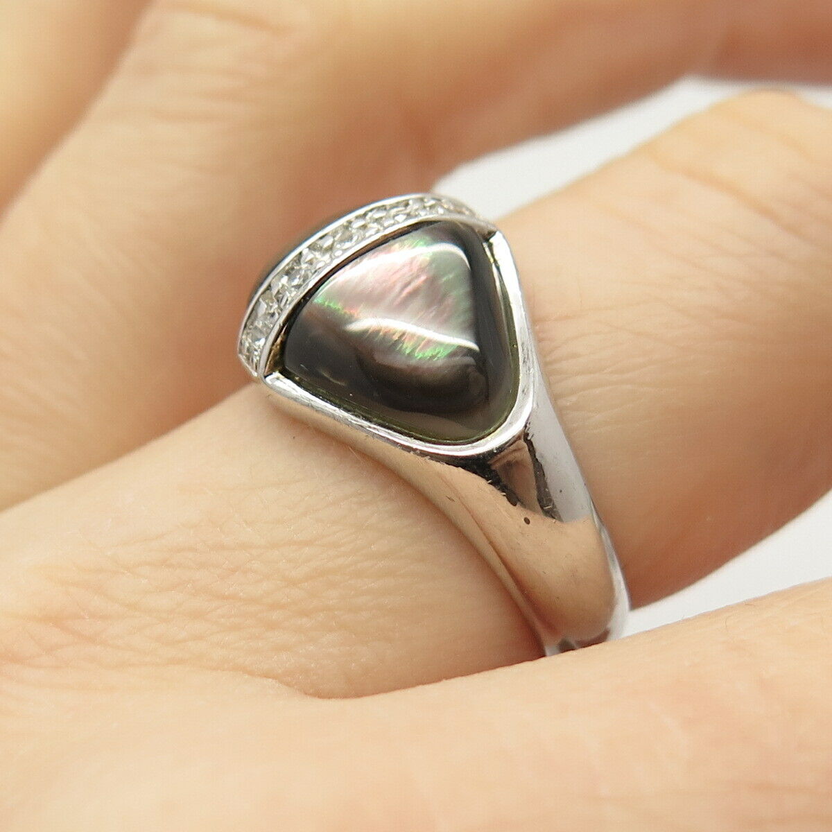 925 Sterling Silver Real Abalone Shell & C Z Ring Size 8.5