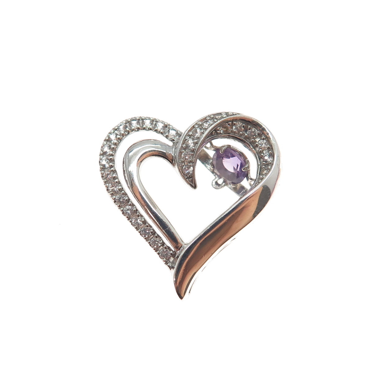 925 Sterling Silver Real Amethyst & White Topaz Heart Mini Slide Charm Pendant