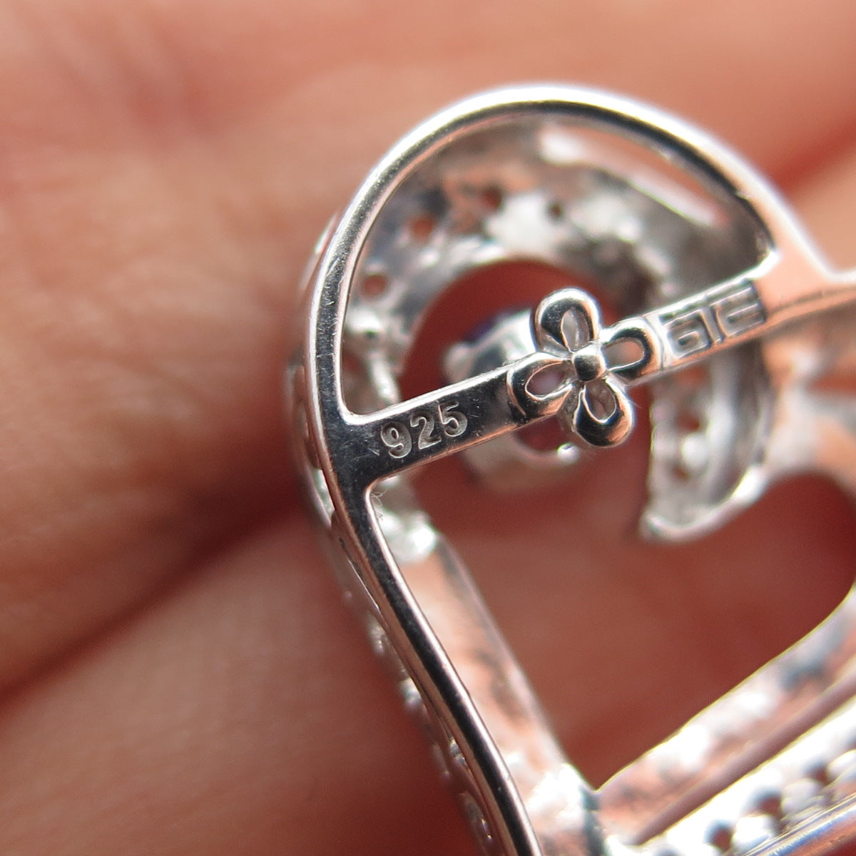 925 Sterling Silver Real Amethyst & White Topaz Heart Minimalist Slide Pendant