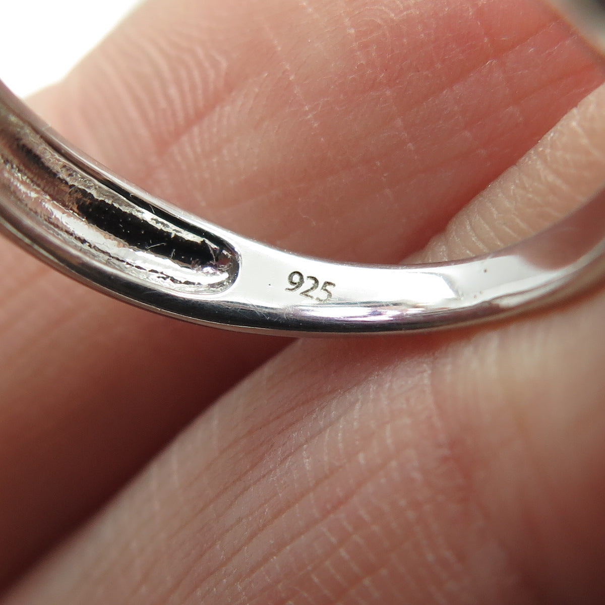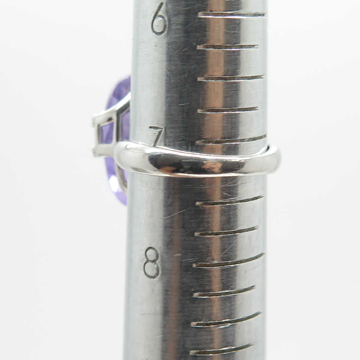 925 Sterling Silver Real Amethyst & White Topaz Wavy Ring Size 7.25